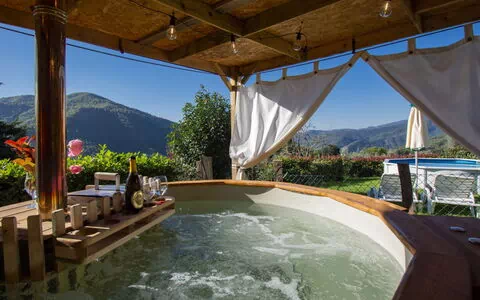 De omheinde tuin van 300 vierkante meter biedt een ruim en privé gebied voor ontspanning. Een charmante pergola voegt karakter toe aan het buitengedeelte en biedt een schaduwrijke plek om uit te rusten. Het terras meet 30 vierkante meter en is voorzien van tuinmeubilair, ideaal voor buitendinen en gezelligheid met uitzicht op de omgeving. Een barbecueplaats is beschikbaar voor maaltijden onder de open lucht. Het bovengrondse zwembad meet 3,5 meter in diameter en is beschikbaar van mei tot september.