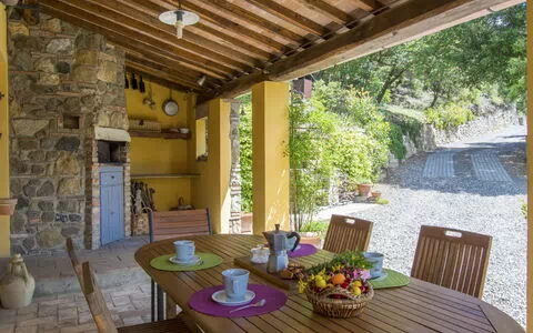 De buitenruimtes van Podere Gabruccino omvatten een pergola die een schaduwrijke plek biedt voor ontspanning in de warmere maanden, en een terras dat uitnodigt om van het vredige uitzicht op het platteland te genieten. Tuinmeubilair is beschikbaar in de buitengebieden, zodat gasten kunnen dineren, lezen of rusten in comfort. Een barbecueplaats is aanwezig voor buitendinen tijdens lange zomeravonden. De privétuin met wilde flora en natuurlijke weiden rondom het pand bieden een buitengewone ruimte en rust, ondergedompeld in het ongerepte Toscaanse landschap.