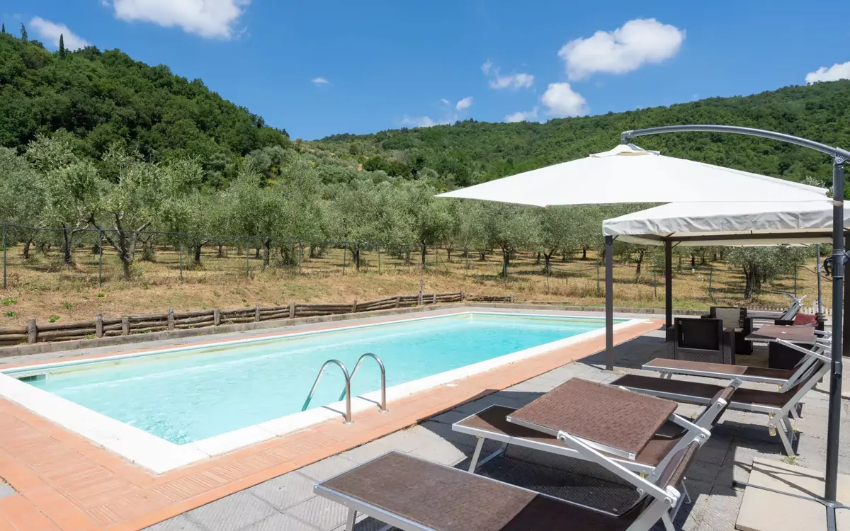 Landhuis "Villa". In het gehucht Londa, 8 km van het centrum van Rufina, 7 km van het centrum van Dicomano, 40 km van het centrum van Firenze, geïsoleerde, verhoogde ligging op een heuvel. Voor medegebruik: terrein 5 ha met bomen, wilde tuin. Prieel, tuinmeubelen, barbecue. Voor alleengebruik: tuin 500 m2, wilde tuin, openluchtzwembad (13 x 5 m, 100 - 250 cm diepte, seizoensgebonden beschikbaarheid: 01.Mei. - 30.Sep.). Douche/WC bij het zwembad, tuinmeubelen. 500 m lange zeer steile toegangsweg. Parkeerplaats op het terrein. Winkel 1 km, supermarkt 6 km, treinstation "Contea" 4 km. Golfterrein (18 holes) 30 km, manege 5 km. De eigenaar woont op hetzelfde terrein. Vanwege een zeer smalle bocht bergopwaarts niet alle bestelwagens en multivans met wielbasis meer dan 2,95 meter zijn toegestaan, alle auto's met een wielbasis tot 2,95 meter zijn toegestaan.