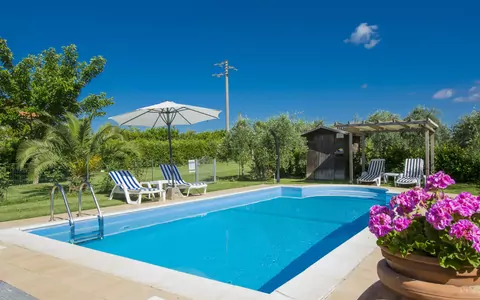 "Oliveta", huis 3-kamers 80 m2. Rustiek en gezellig ingericht: woon-/eetkamer met eettafel, Sat-TV en houtkachel. 1 kamer met 1 2-pers bed (160 cm). 1 kamer met 1 x 2 stapelbedden (80 cm), 1 2-pers bed (160 cm). Uitgang naar het terras. Open keuken (4-pits kookplaat, afwasmachine, broodrooster, diepvriezer, elektrische koffiemachine). 2 douche/WC's. Verwarming, air-conditioning. Terras overdekt, 2 terrassen, zithoek in de tuin overdekt. Terrasmeubelen, barbecue. Ter beschikking: wasmachine, kinderstoel, kinderbed. Internet (WiFi, gratis). Maximaal 1 huisdier/hond toegestaan. Brandblusser. IT049007C266VCLRPO