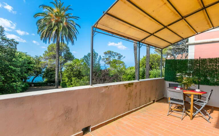 "Beach home", appartement 3-kamers 90 m2 op 2 verdiepingen op de 1e verdieping. Mooi en modern ingericht: woon-/slaapkamer met 1 2-pers divanbed, eettafel en TV. Uitgang naar het terras. Keuken (oven, afwasmachine, 3 inductiekookplaten, broodrooster, waterkoker, magnetron). Douche/bidet/WC. Elektrische verwarming, air-conditioning. Bovenverdieping: 1 kamer met 1 bed en 1 2-pers bed. 1 kamer met 2 bedden. Bad/bidet/WC. Groot terras gedeeltelijk. Terrasmeubelen. Mooi uitzicht op zee en de tuin. Ter beschikking: wasmachine, kinderstoel, kinderbed tot 2 jaar (extra), haardroger. Internet (WiFi, gratis). Parkeerplaats (2 Auto's). Maximaal 1 huisdier/hond toegestaan. Privé ingang, brandblusser. Bedindeling is flexibel. Er zijn meer slaapmogelijkheden beschikbaar dan het maximaal toegestane aantal personen dat echter niet mag worden overschreden. Bedlinnen, handdoeken, eindschoonmaak en alle energiekosten zijn inclusief. IT049017C273SRXGAA