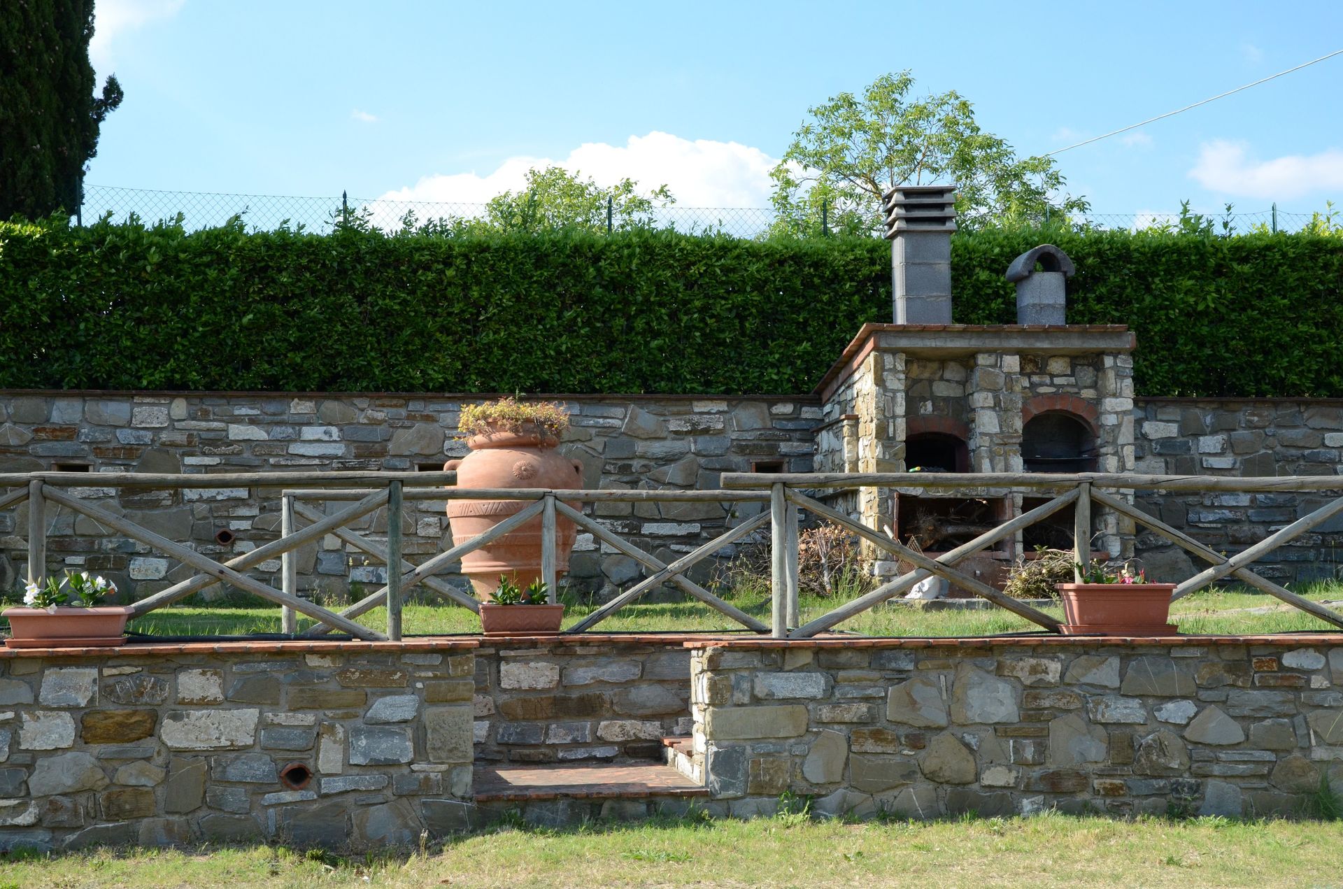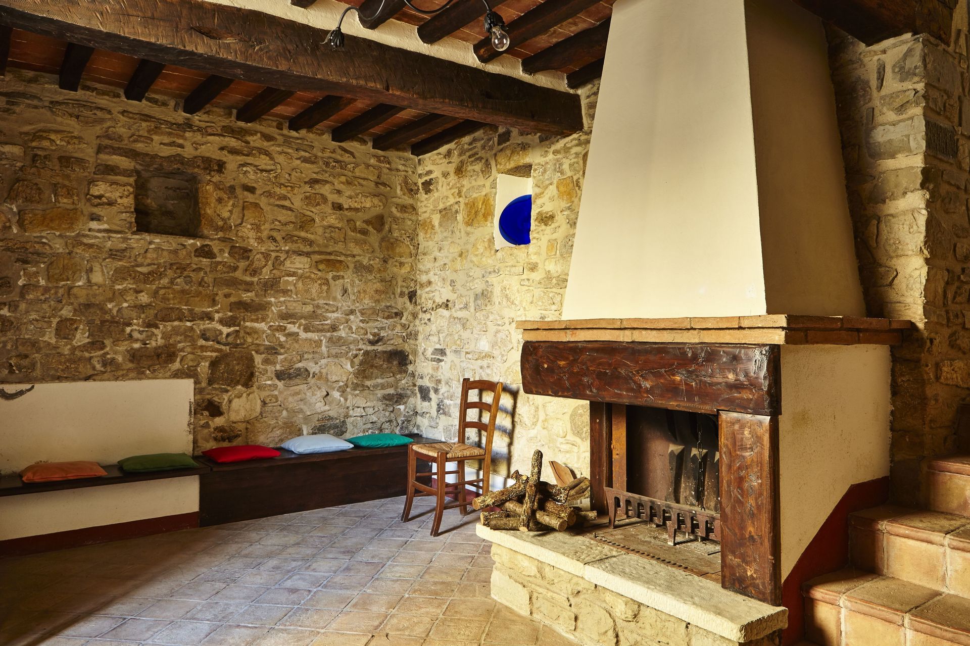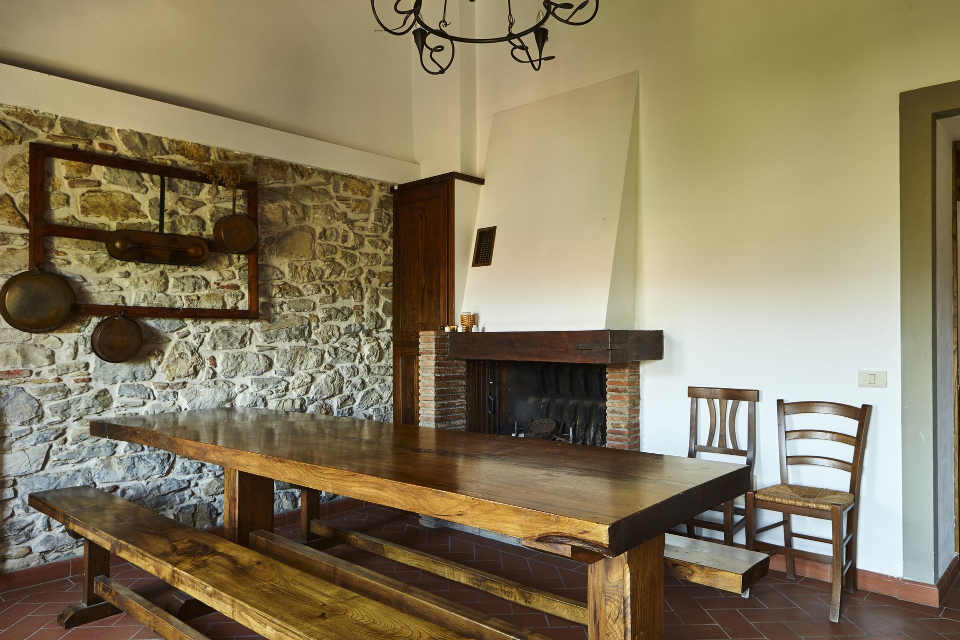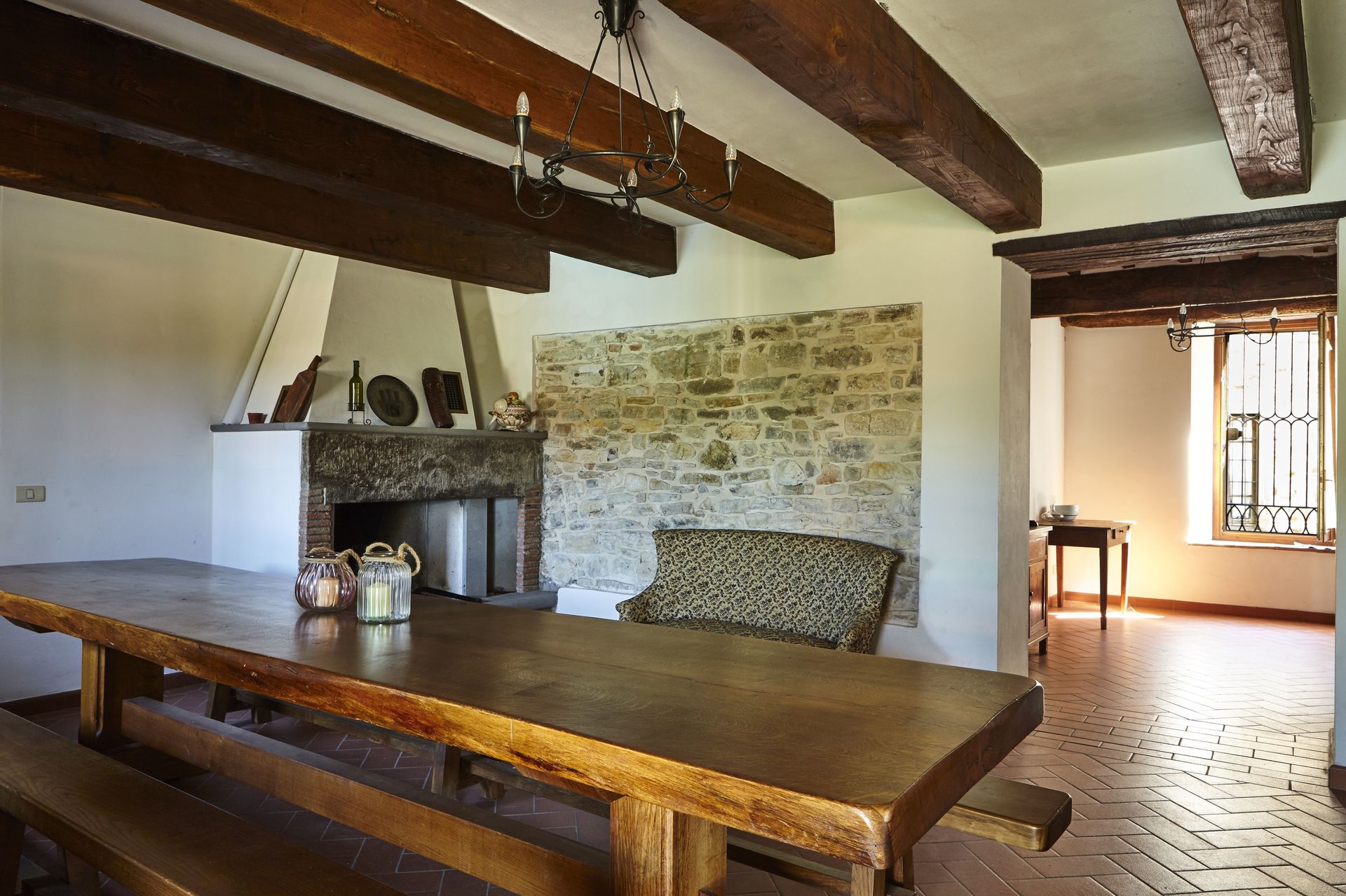 Keuken – woonkamer 1 (70 m2): goed uitgeruste keuken, eettafel (personen: 19), vaatwasser, ijskast, diepvriezer, oven, italiaans koffiezetapparaat, bank, open haard, WIFI internet, satelliet tv, uitgang naar de tuin.