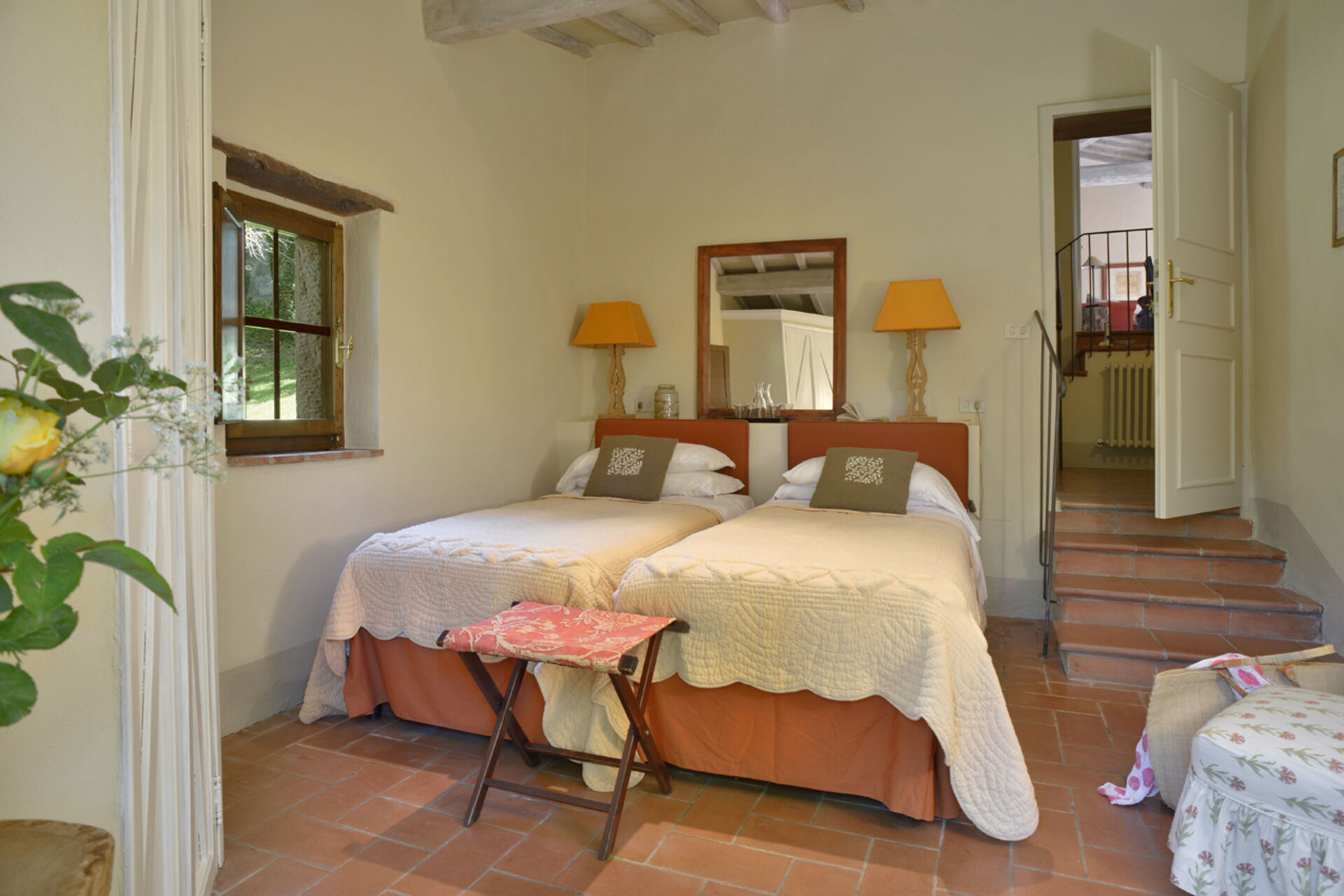 Slaapkamer 2: twee eenpersoonsbedden, WIFI internet, uitgang naar de tuin.
