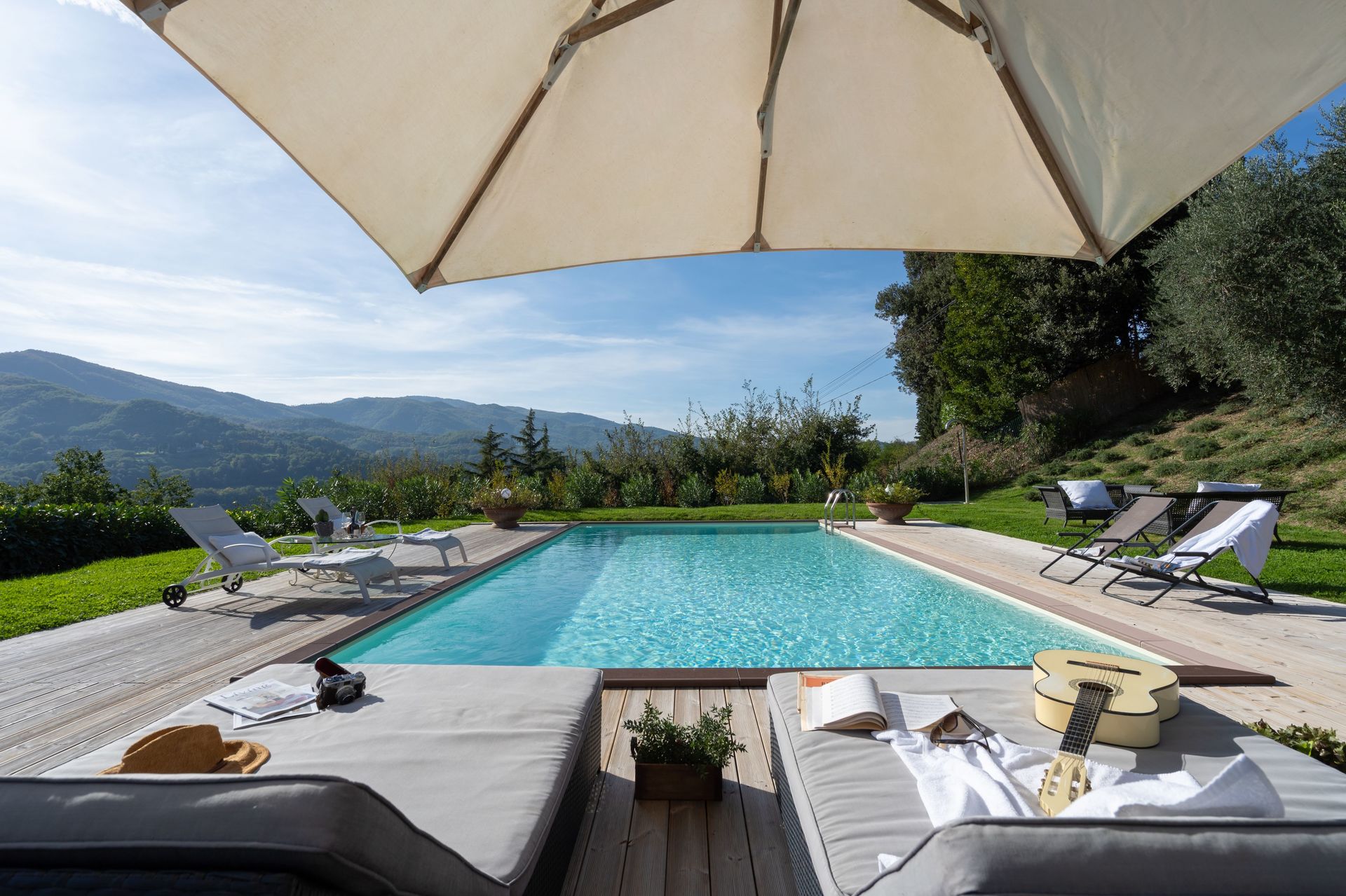 Bij aankomst wordt u ontvangen door de eigenaar of beheerder en vindt u een fijne, schone en goed onderhouden woning met uitzicht over de heuvels ideaal voor een rustige vakantie in Toscane. Voor uw vermaak vindt u een privé zwembad waar u kunt ontspannen terwijl u geniet van een heerlijk koel drankje na een hectische dag musea bezoeken. Eten met vrienden en familie is een grote onderdeel van de Toscaanse cultuur. Maak gebruik van de goed uitgeruste keuken om maaltijden te bereiden met lokale producten terwijl u op vakantie bent. De keuken biedt o.a. een koffiezetapparaat, magnetron oven, broodrooster en ijskast, en natuurlijk ook voldoende servies en bestek voor minstens acht personen. Eet buiten net zoals een echte Toskaan, een terras met tuinmeubilair is ideaal om te genieten van het heerlijke eten, de familie en het fraaie Toscaanse klimaat.