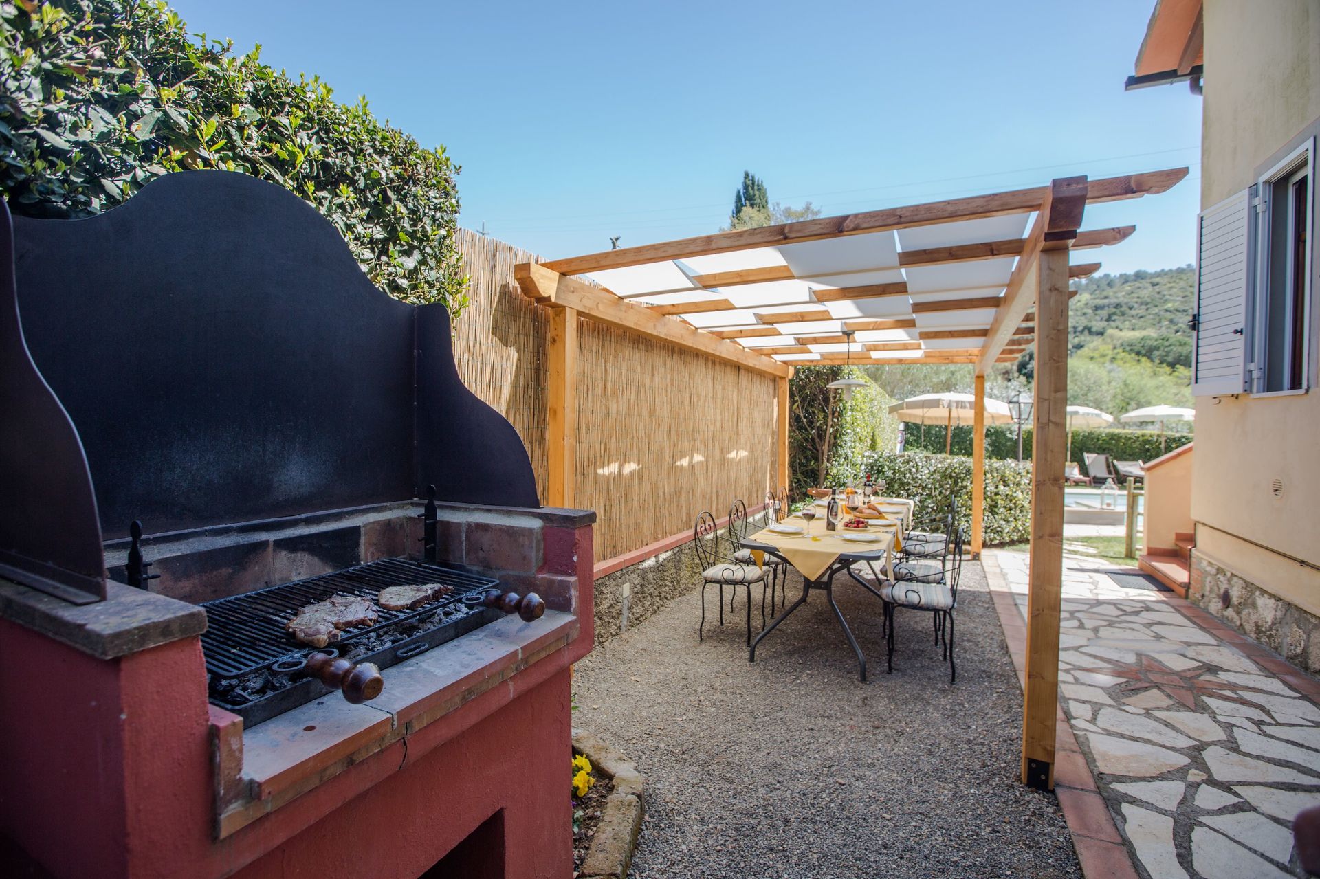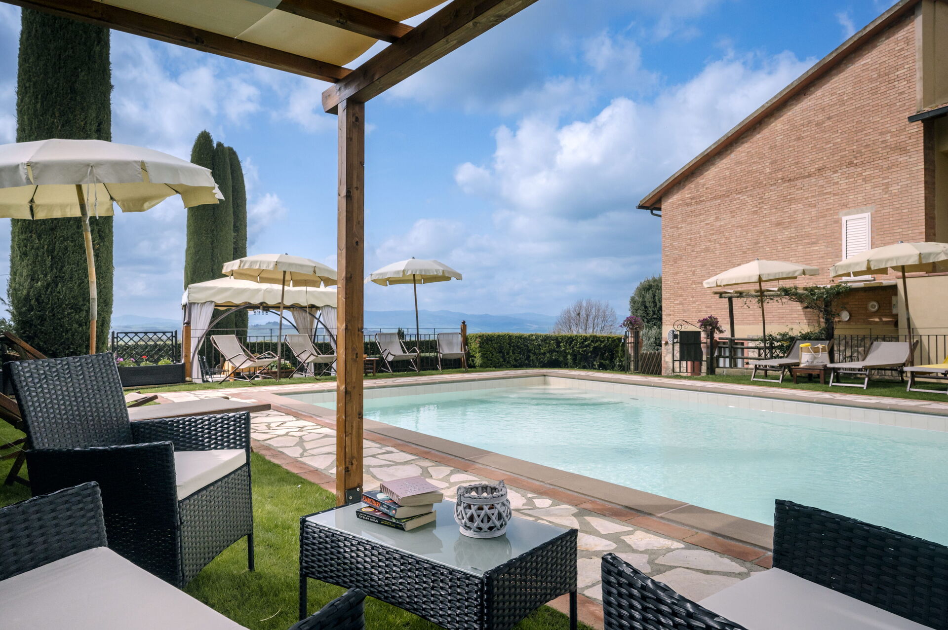 Wanneer u aankomt vindt u een mooie, schone en goed onderhouden woning perfect voor een ontspannen vakantie in Toscane. Voor uw vermaak vindt u een privé zwembad waar u kunt ontspannen terwijl u geniet van een heerlijk koel drankje na een hectische dag toeren. Op het terrein is er voor uw genoegen een barbecue en terras. Als u van koken houdt is er een goed uitgeruste keuken met o.a. koffiezetapparaat, magnetron oven, broodrooster en ijskast en natuurlijk voldoende servies en bestek voor tot acht personen. Als u liever buiten eet is er een patio waar u van het weer kan genieten terwijl u buiten eet.