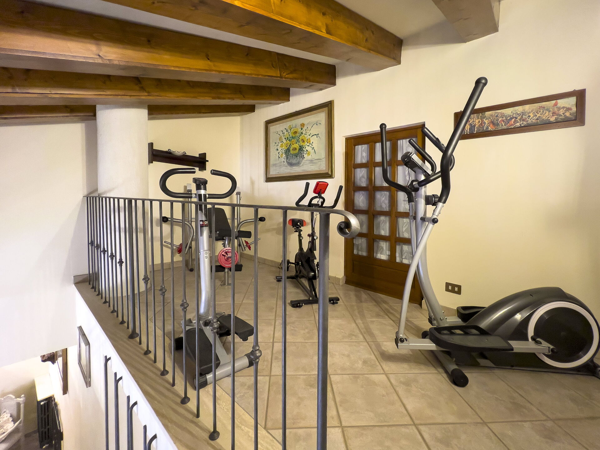 Er is een fitnessruimte in de in de open ruimte op de begane grond.