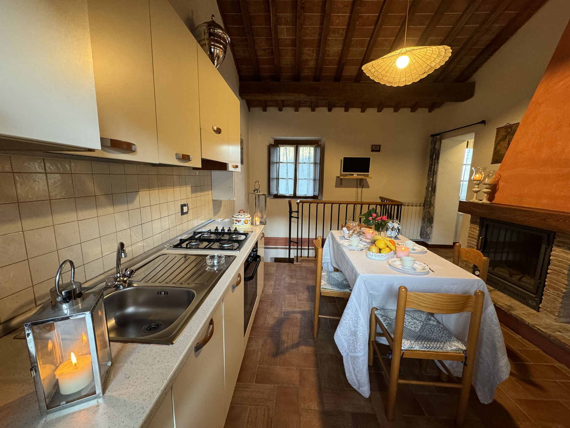 Bij aankomst vindt u een mooie, schone en goed onderhouden woning met uitzicht over de heuvels ideaal voor een rustige vakantie in Toscane. Voor uw vermaak vindt u een gemeenschappelijk zwembad waar u kunt ontspannen terwijl u geniet van een heerlijk koel drankje na een drukke dag musea bezoeken. Er is een keuken met o.a. fornuis en ijskast en natuurlijk voldoende servies en bestek voor tot acht personen. Als u liever buiten eet is er een terras waar u van het weer kan genieten terwijl u buiten eet.