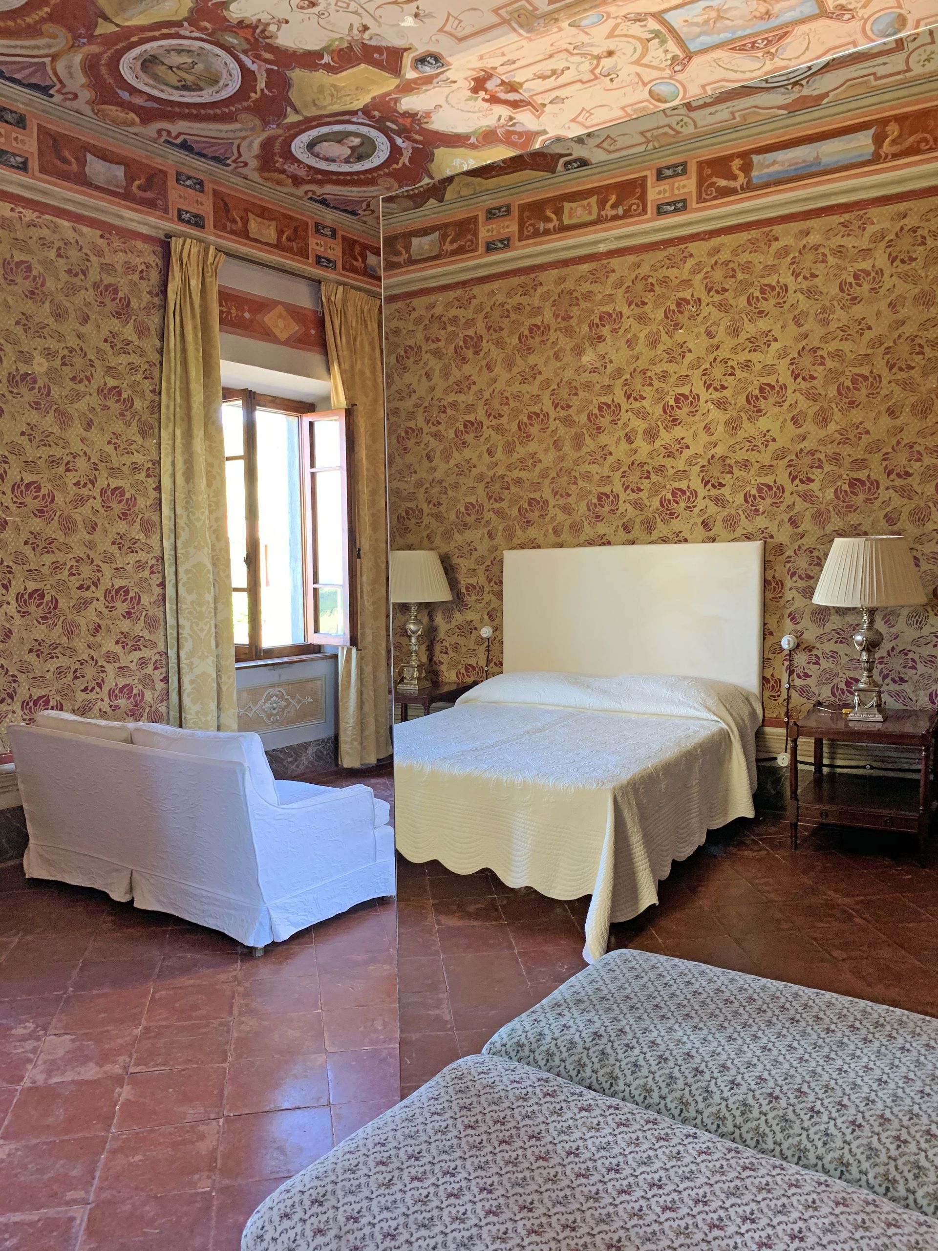 Slaapkamer met badkamer 5: tweepersoonsbed, WIFI internet, airconditioning, satelliet tv, bank, toilet , bidet, douche.