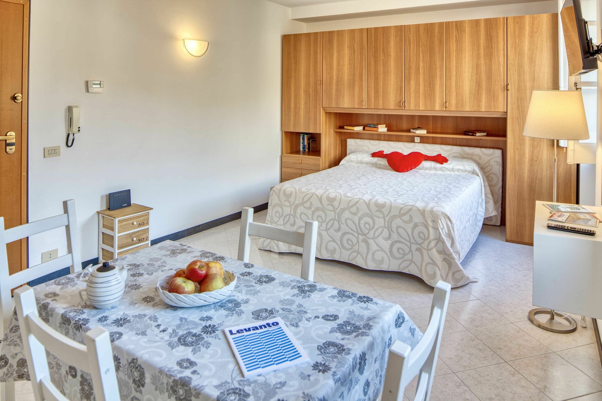 Location was very good. The local agency walked us over and gave a very good understanding of the studio. She recommended a couple restaurants for us. We did not care for the wooden shelf that went along the headboard of the bed it caused numerous problems with resting up against it or sleeping. If you raised your head up much you would bang your head. Also no curtains on the windows.