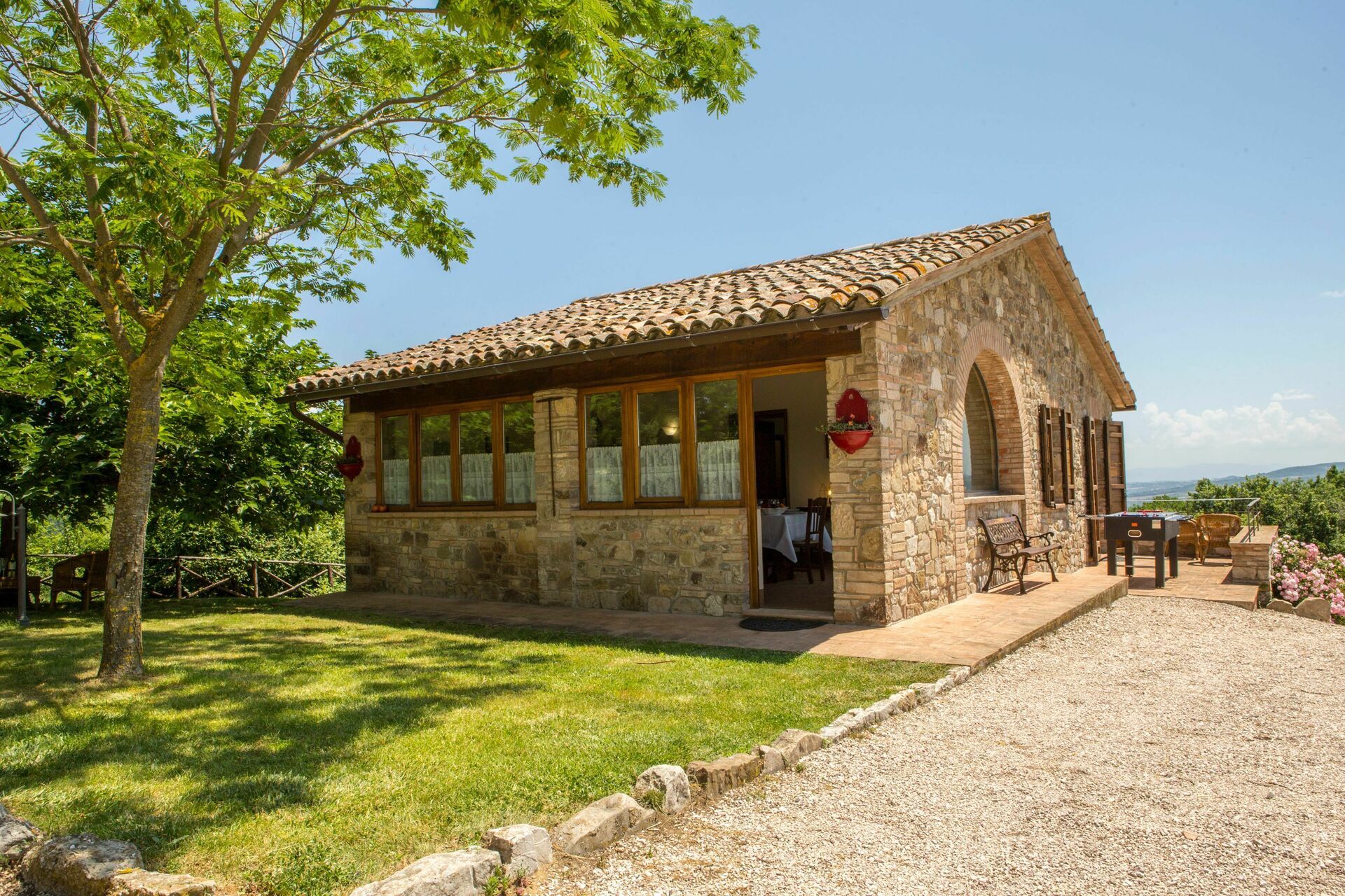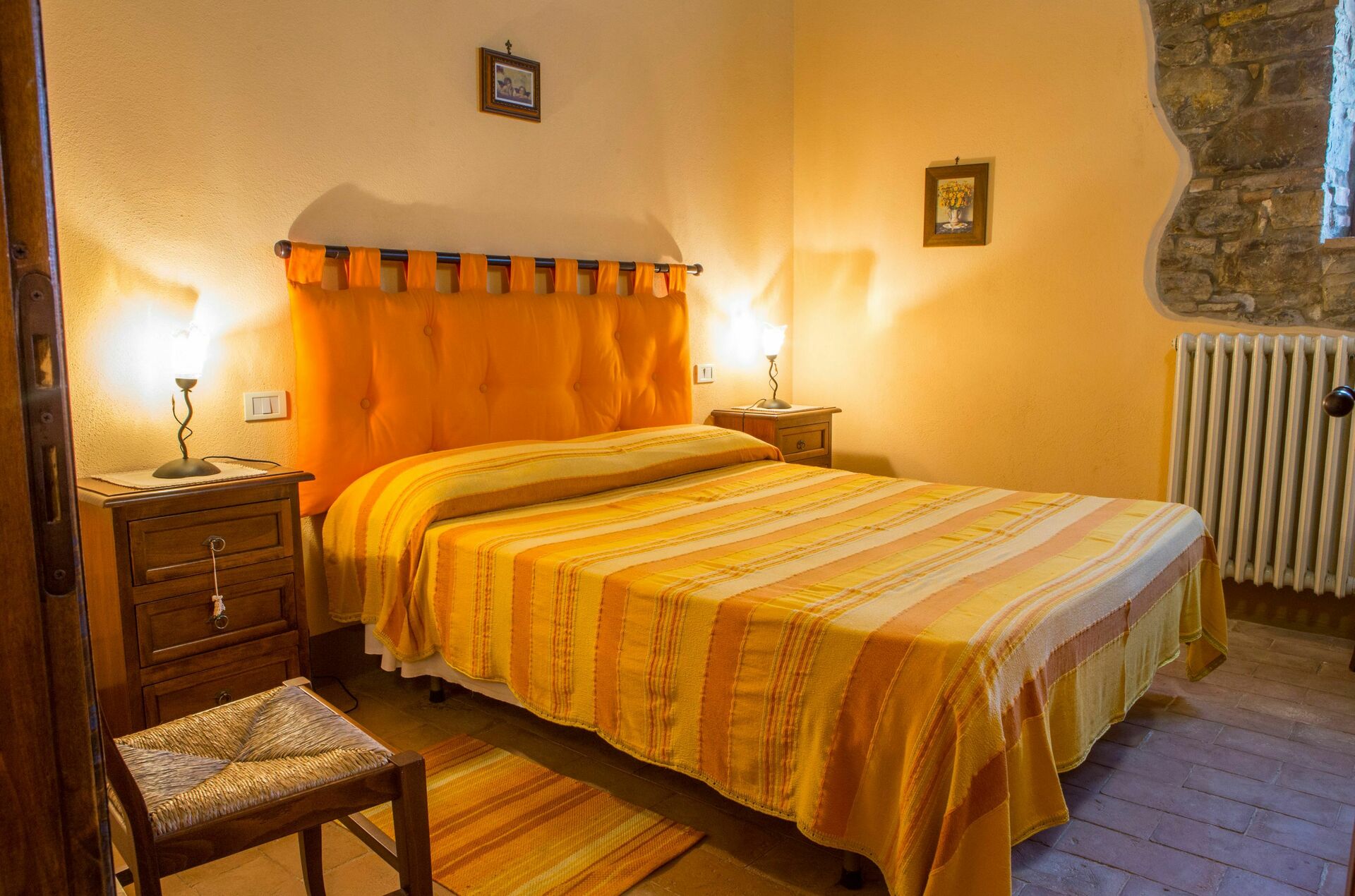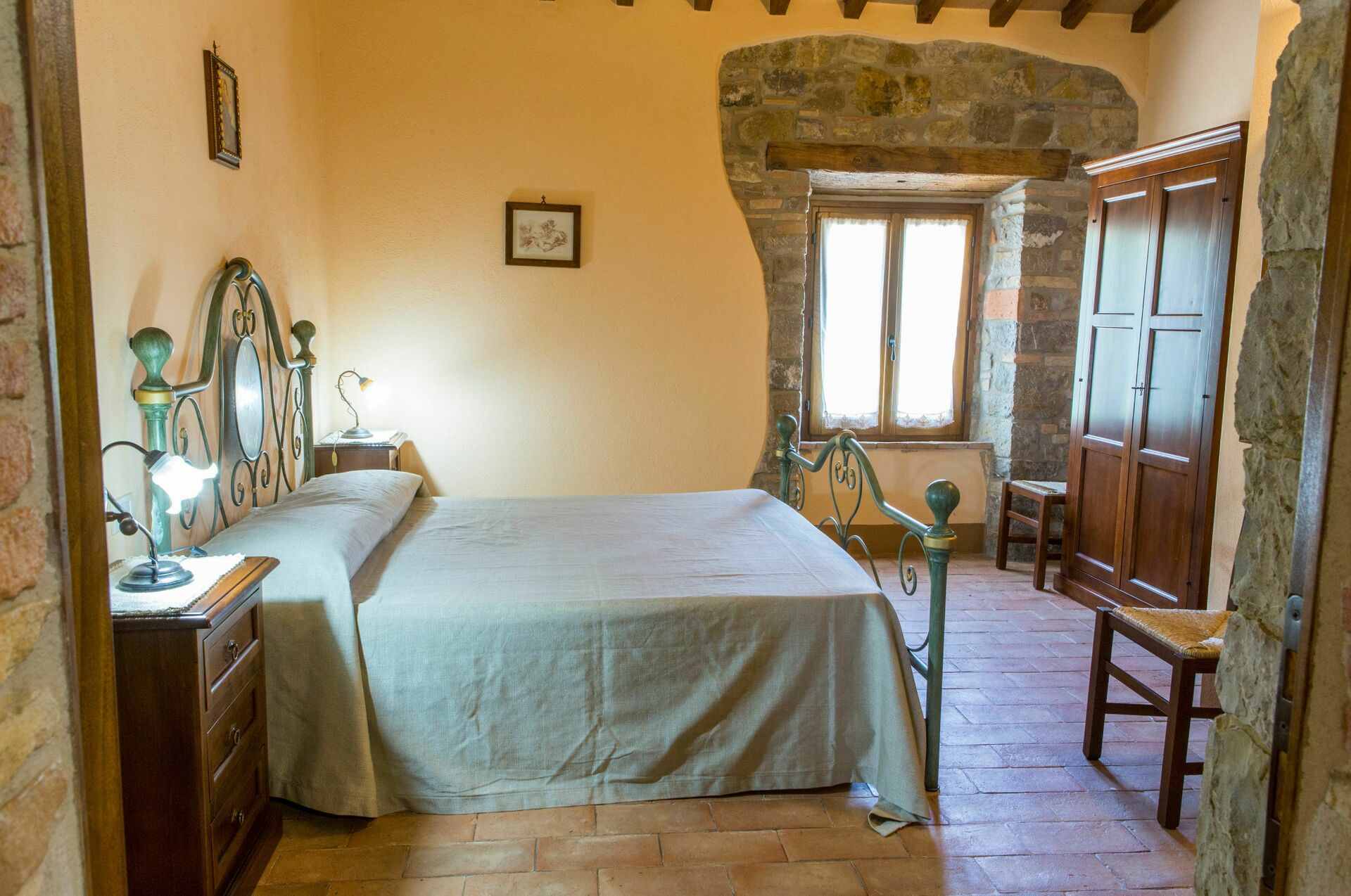 tell of these ancient customs. Completely renovated, the house consists of 4 apartments, partly communicating and partly independent, furnished in the traditional Umbrian style with wrought iron beds, solid wood furniture, terracotta tiles, exposed wooden beams and stone details on the walls.