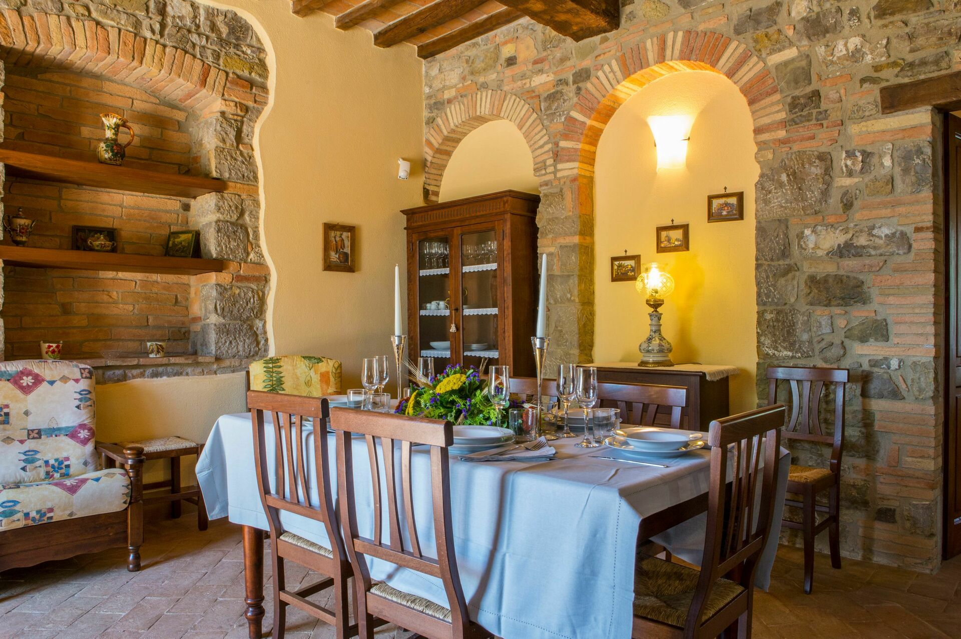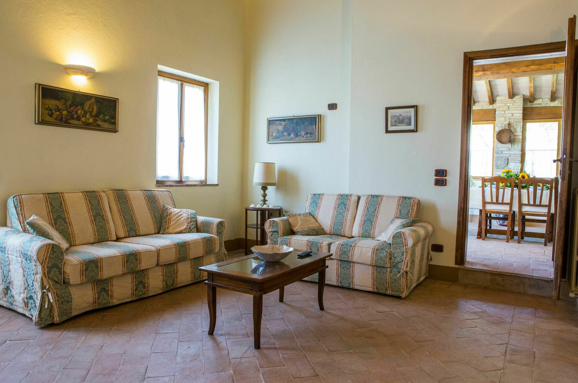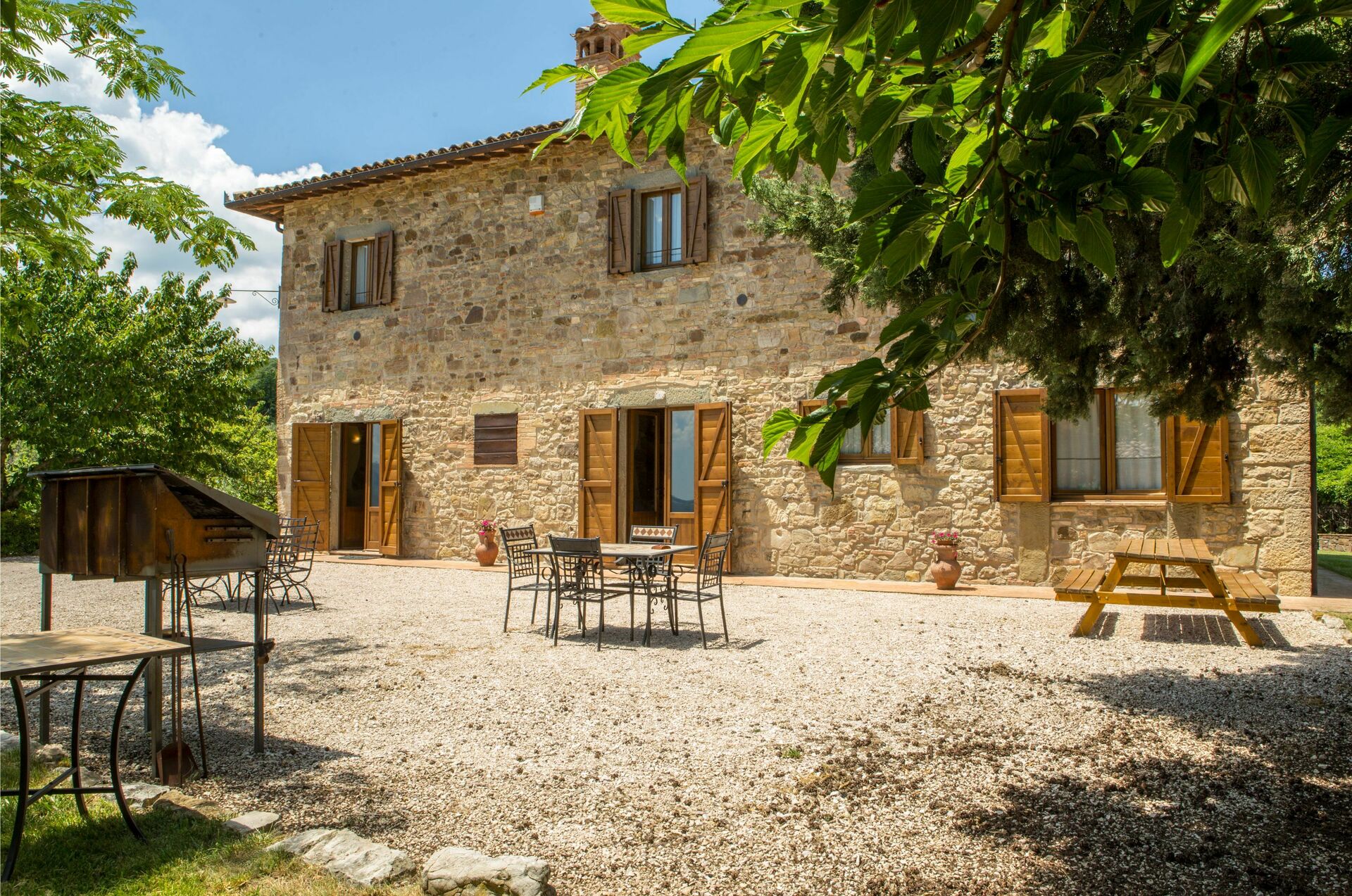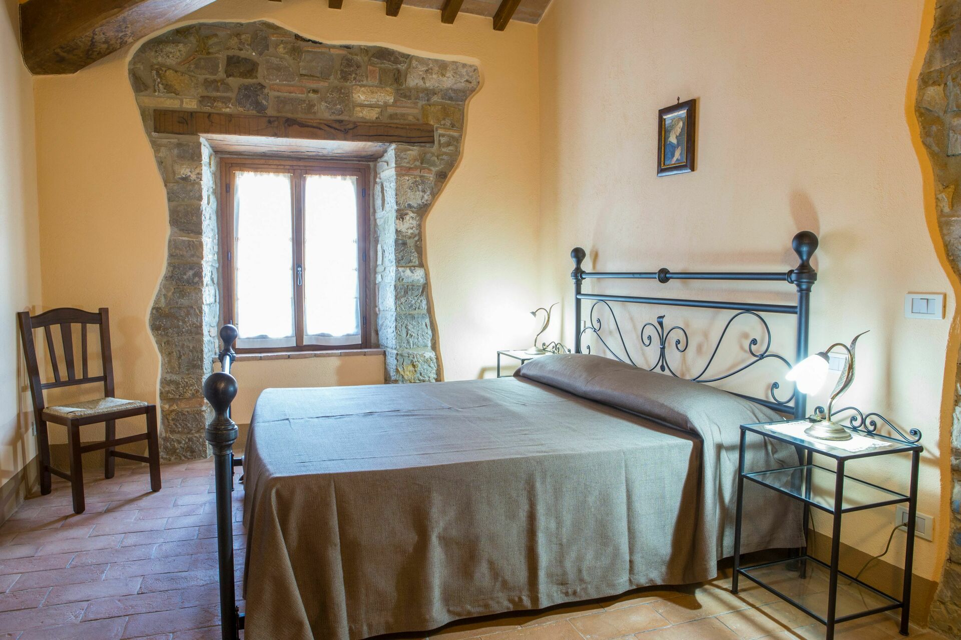 tell of these ancient customs. Completely renovated, the house consists of 4 apartments, partly communicating and partly independent, furnished in the traditional Umbrian style with wrought iron beds, solid wood furniture, terracotta tiles, exposed wooden beams and stone details on the walls.