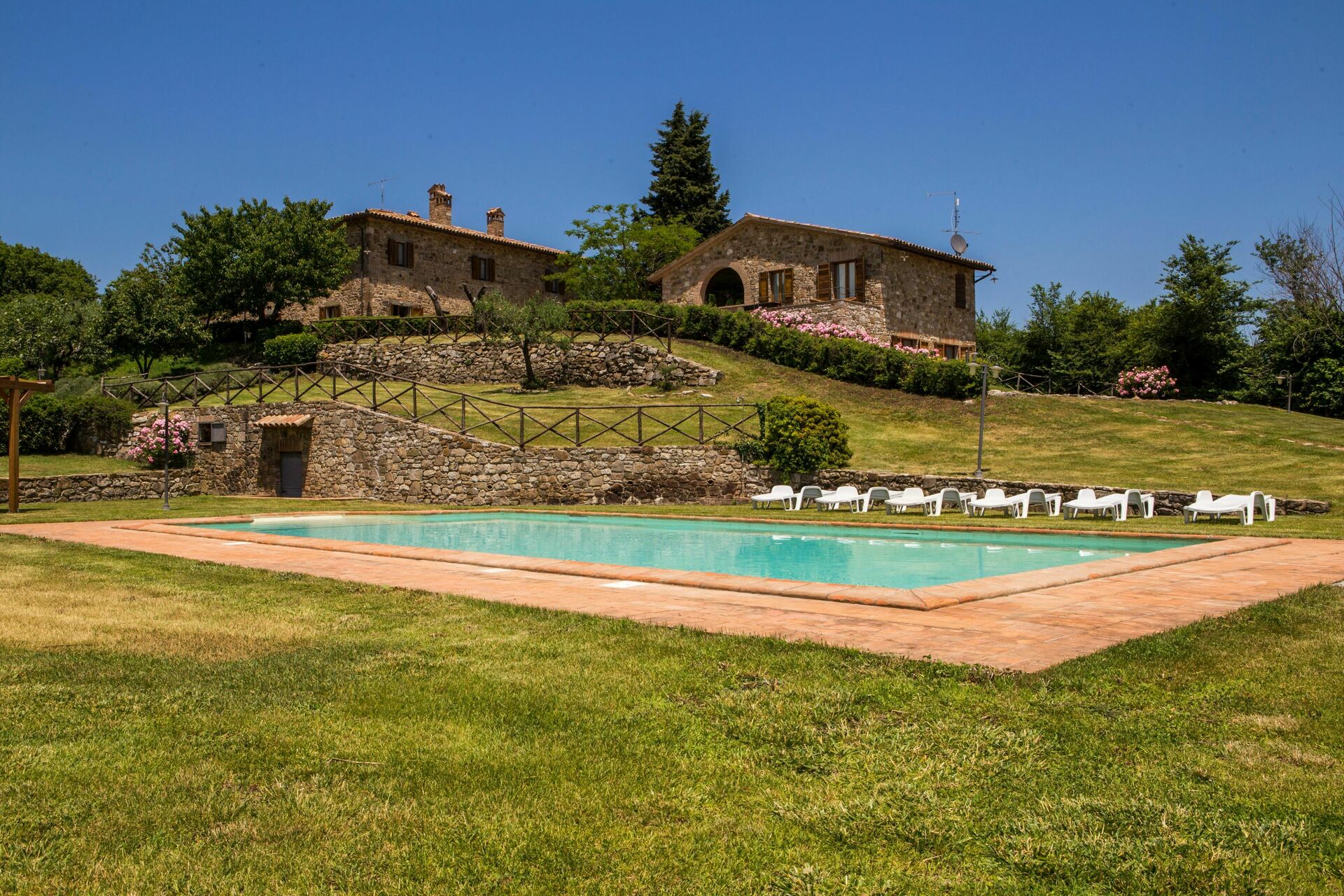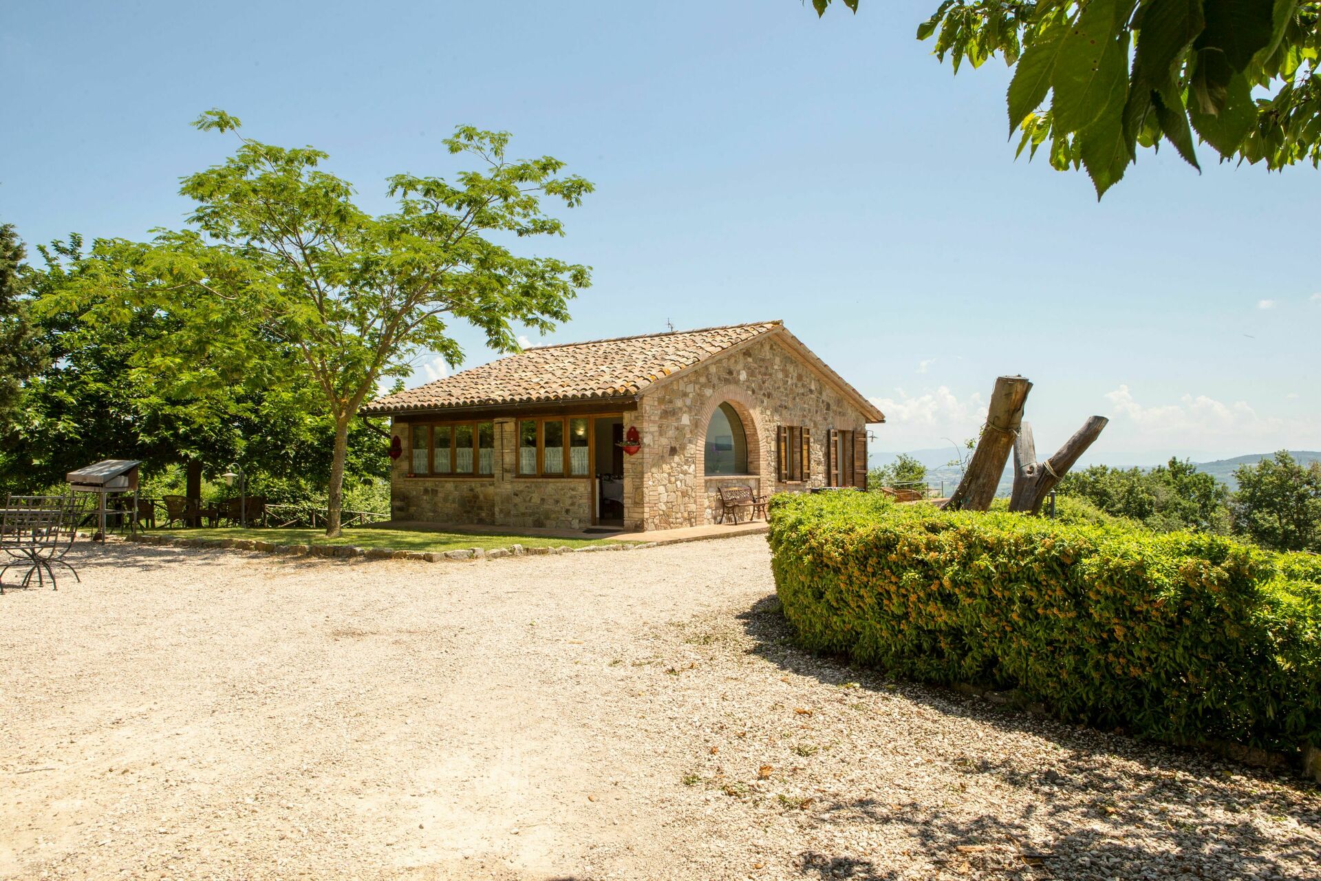 This country house set on a panoramic position surrounded by centuries-old trees, vineyards and olive groves. Ancient stone structure from the late 19th century, it retains all the characteristics of an extraordinary region such as Umbria. The materials of which it is made, the greenery all around the main residence, speak by telling the story of an almost magical place a stone's throw from a watercourse where once the maceration of hemp took place, the watering of livestock and the washing the fleece of the sheep. The elders of the place still