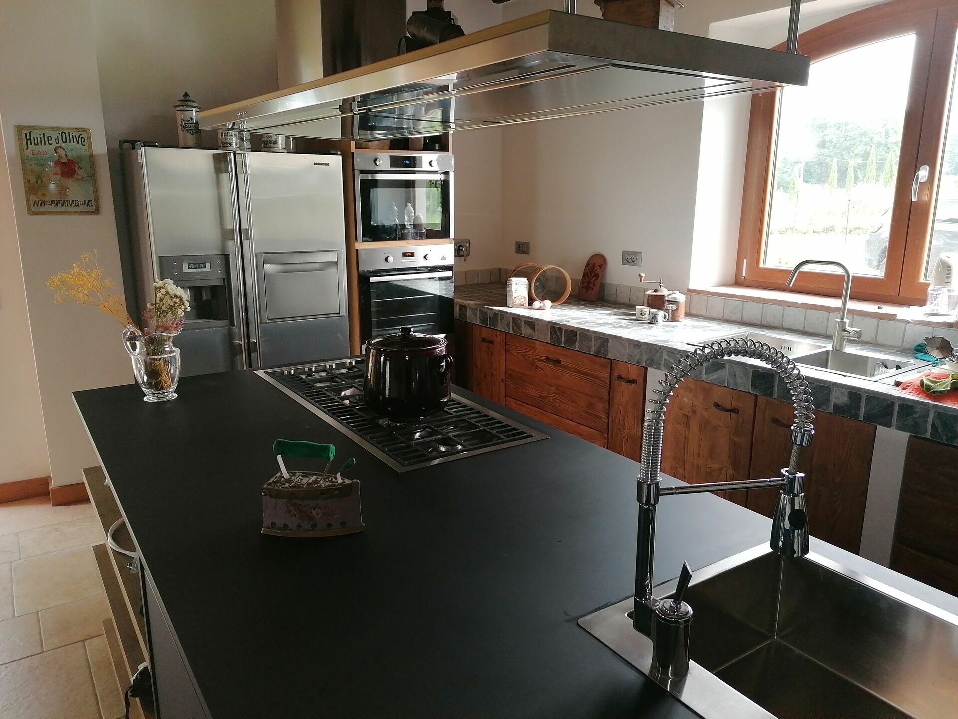 Keuken (20 m2): goed uitgeruste keuken, vaatwasser, ijskast, diepvriezer, magnetron, broodrooster, strijkijzer, italiaans koffiezetapparaat, WIFI internet, internet, tv, tv, mindervaliden ok, uitgang naar de tuin.
