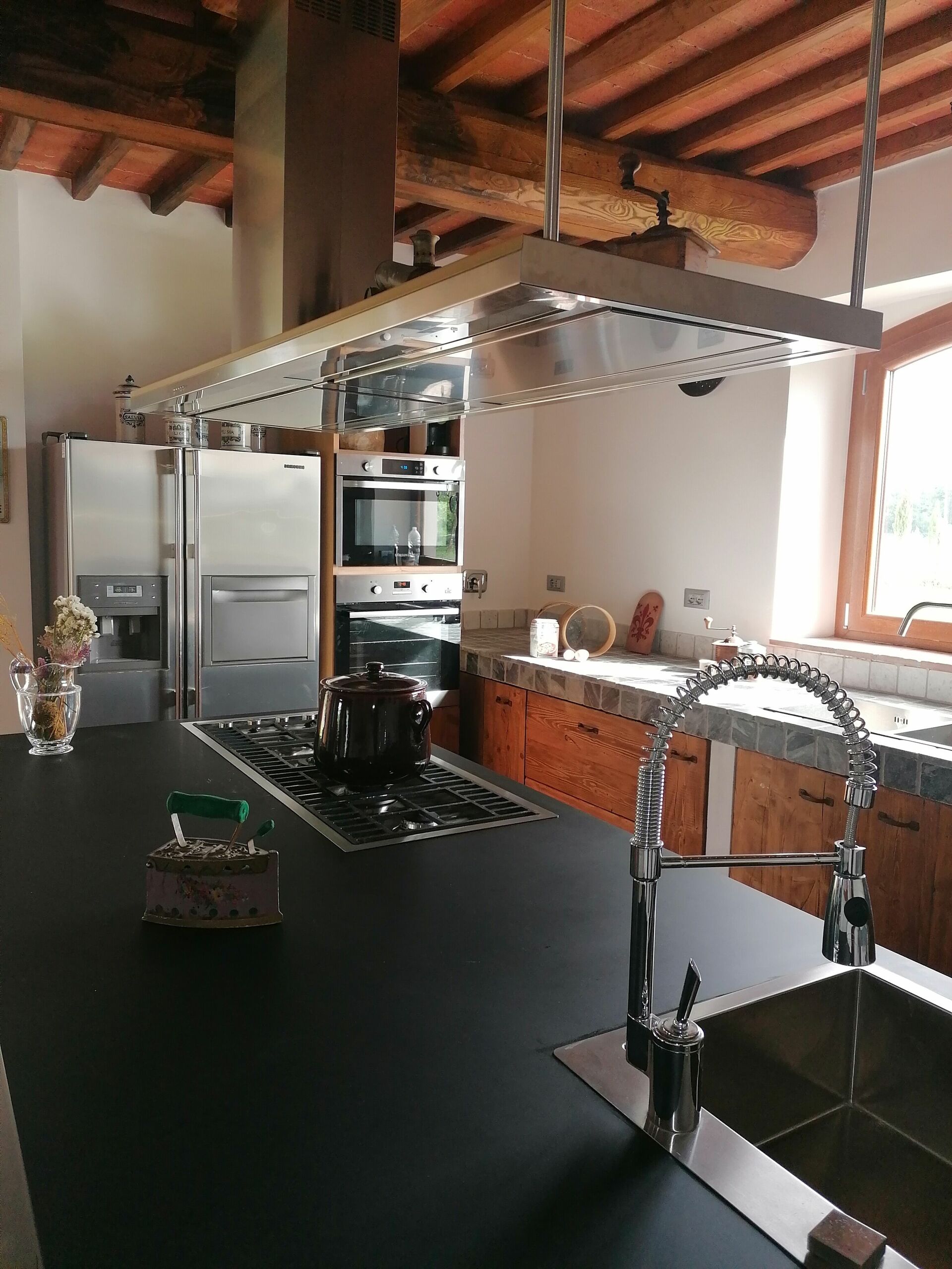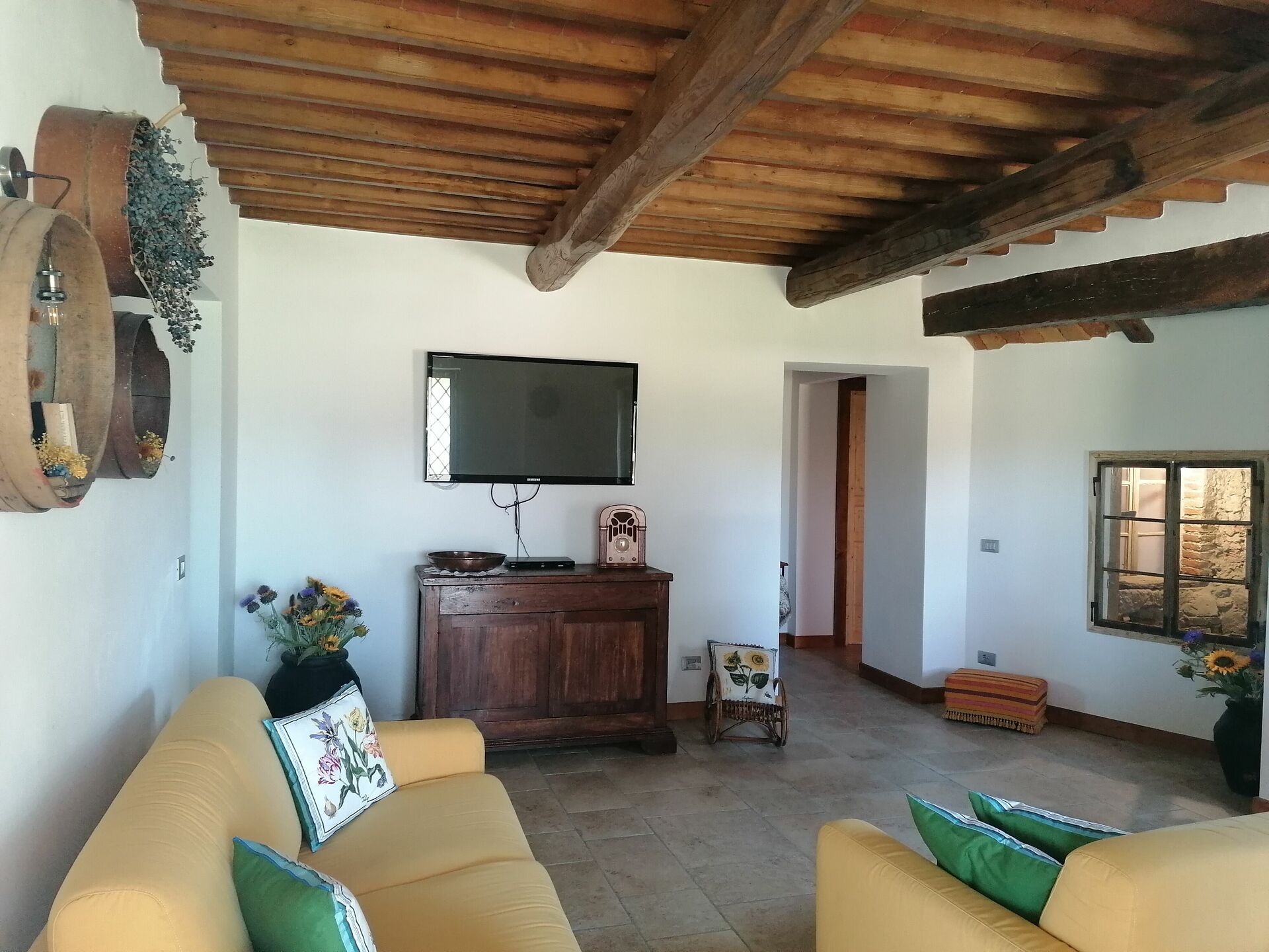 Zodra u aankomt vindt u een prachtige, schone en goed onderhouden woning met uitzicht over de bergen en de heuvels perfect voor een geweldige vakantie in Toscane. Voor uw vermaak vindt u een privé zwembad waar u kunt ontspannen terwijl u geniet van een heerlijk koel drankje na een drukke dag musea bezoeken. Op het terrein is er voor uw genoegen een barbecue en speeltuin. Dineren met vrienden en familie is een grote onderdeel van de Toscaanse cultuur. Maak gebruik van de goed uitgeruste keuken om maaltijden te bereiden met lokale producten terwijl u op vakantie bent. De keuken biedt o.a. een koffiezetapparaat, magnetron oven, broodrooster, fornuis en ijskast, en natuurlijk ook voldoende servies en bestek voor minstens 17 personen. Eet buiten net zoals een echte Toskaan, een veranda met tuinmeubilair is perfect om te genieten van het heerlijke eten, de familie en het fraaie Toscaanse klimaat.