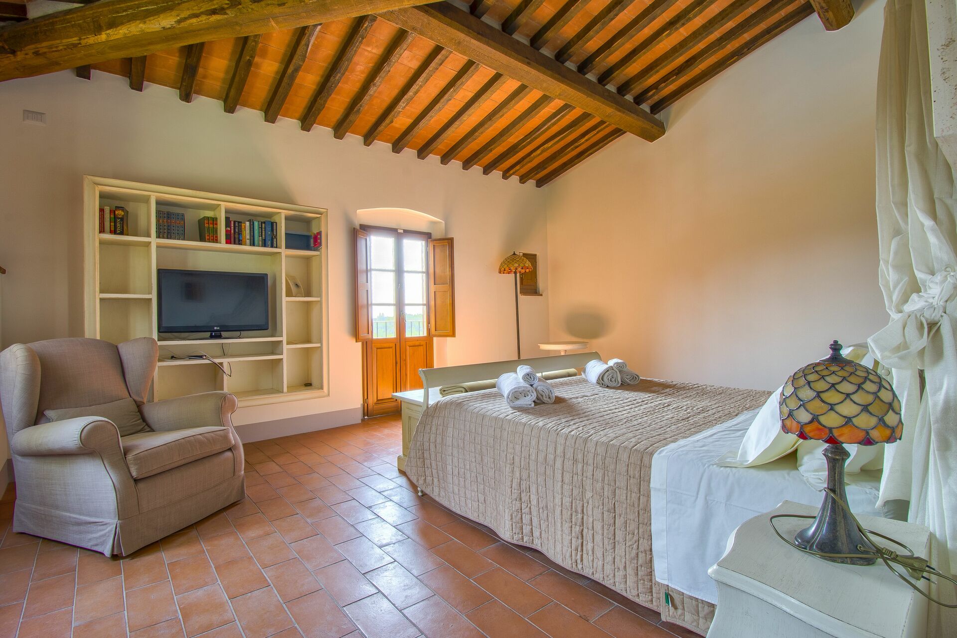 Bij aankomst te Villa Francia vindt u een fraaie, schone en goed onderhouden woning met uitzicht over de heuvels perfect voor een ontspannen vakantie in Toscane. Hoe u de dagen ook doorbrengt - musea bezoek, met excursies, winkelen of rijdende door het prachtige landschap, zodra u thuis komt kunt u uitrusten samen met familie en vrienden bij het zwembad voor een perfecte afsluiting van nog weer een dag in Toscane. Op het terrein is er voor uw genoegen een patio en barbecue. Als u van koken houdt is er een goed uitgeruste keuken met o.a. koffiezetapparaat, magnetron oven, broodrooster en ijskast en natuurlijk voldoende servies en bestek voor tot 12 personen.