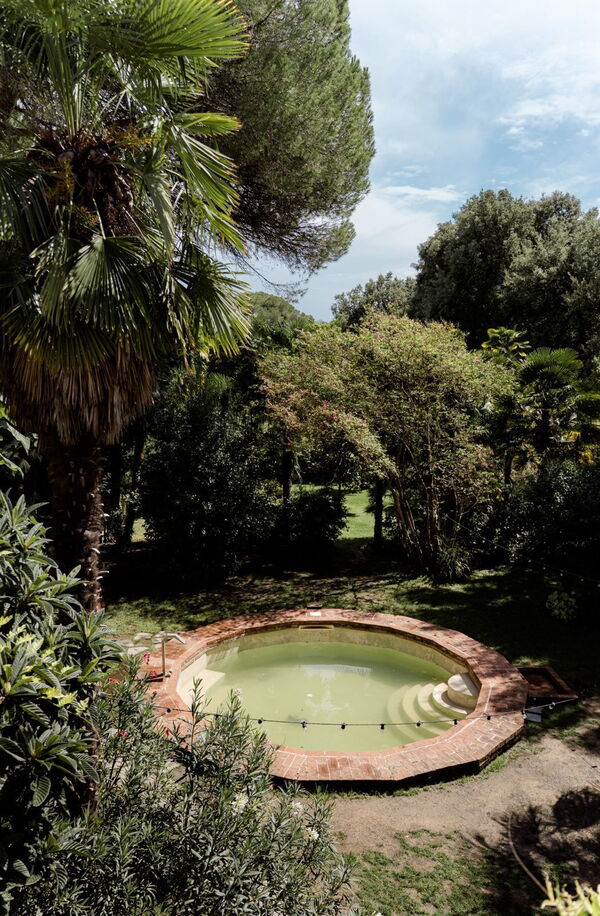 Tuin: zwembad (breedte: 3m, lengte: 4m, diepte: 0.8m), zwembad (breedte: 7m, lengte: 15m, max. diepte: 2.5m, min. diepte: 1.2m), tennisbaan.