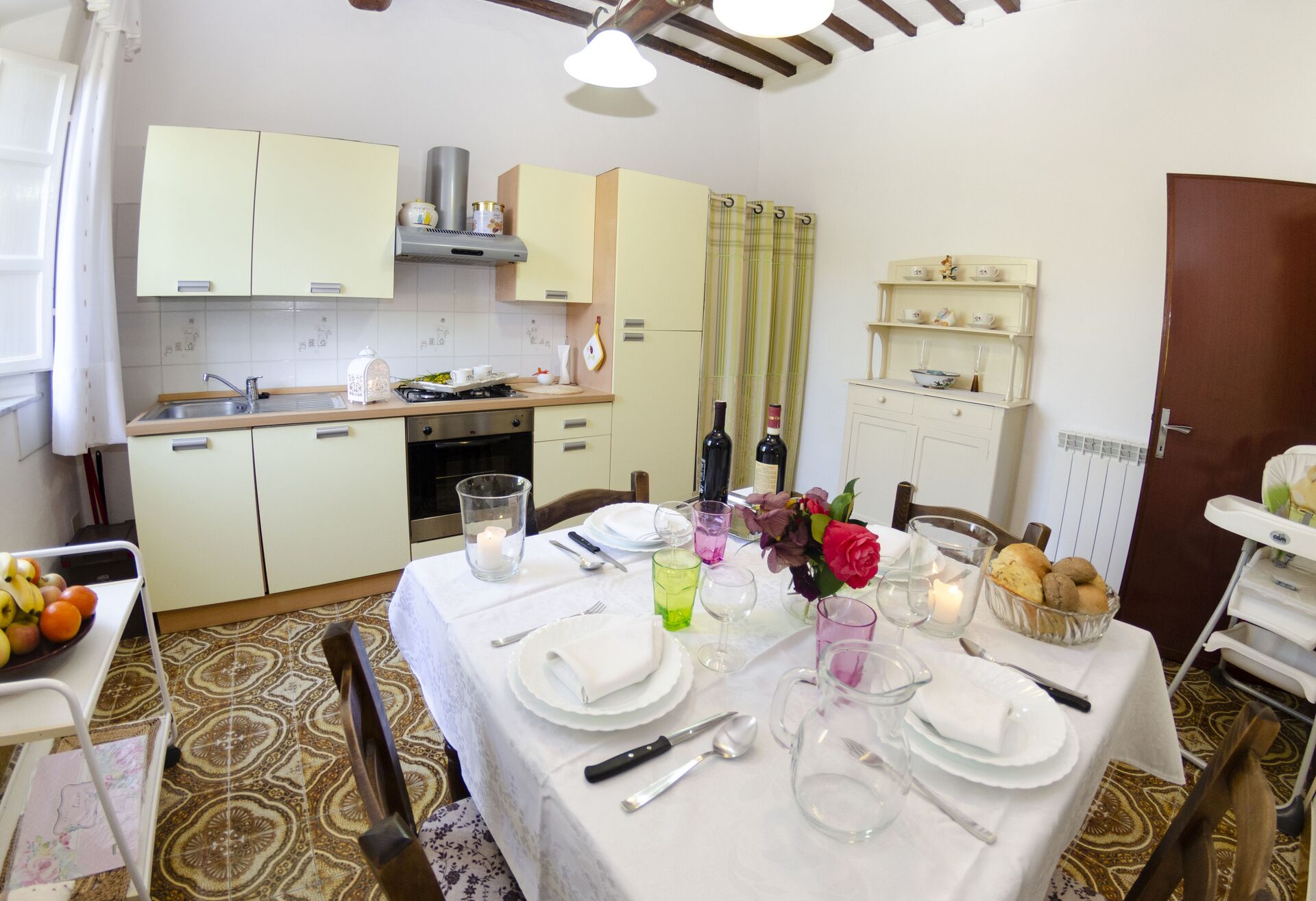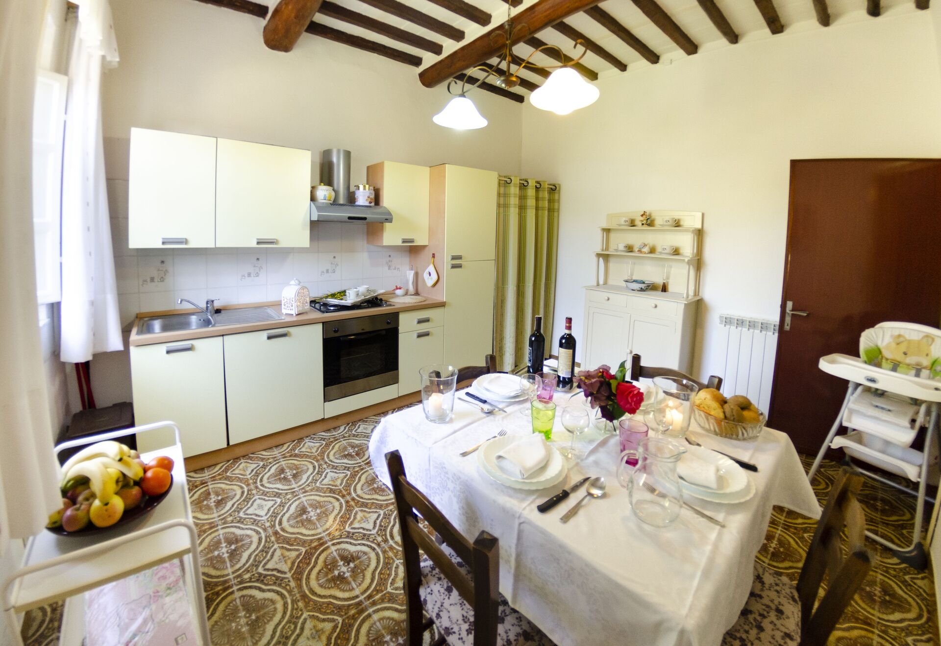 Wanneer u aankomt te Alla Collina Del Sole vindt u een mooie, schone en goed onderhouden woning met uitzicht over de heuvels perfect voor een geweldige vakantie in Toscane. Na een drukke dag toeren kunt u de tijd doorbrengen met vrienden en familie bij het zwembad, en genieten van een glaasje wijn - een perfecte manier om te uitrusten aan het einde van de dag. Op het terrein is er voor uw genoegen een barbecue en speeltuin. Als u van koken houdt is er een goed uitgeruste keuken met o.a. magnetron oven, fornuis en ijskast en natuurlijk voldoende servies en bestek voor tot zes personen.
