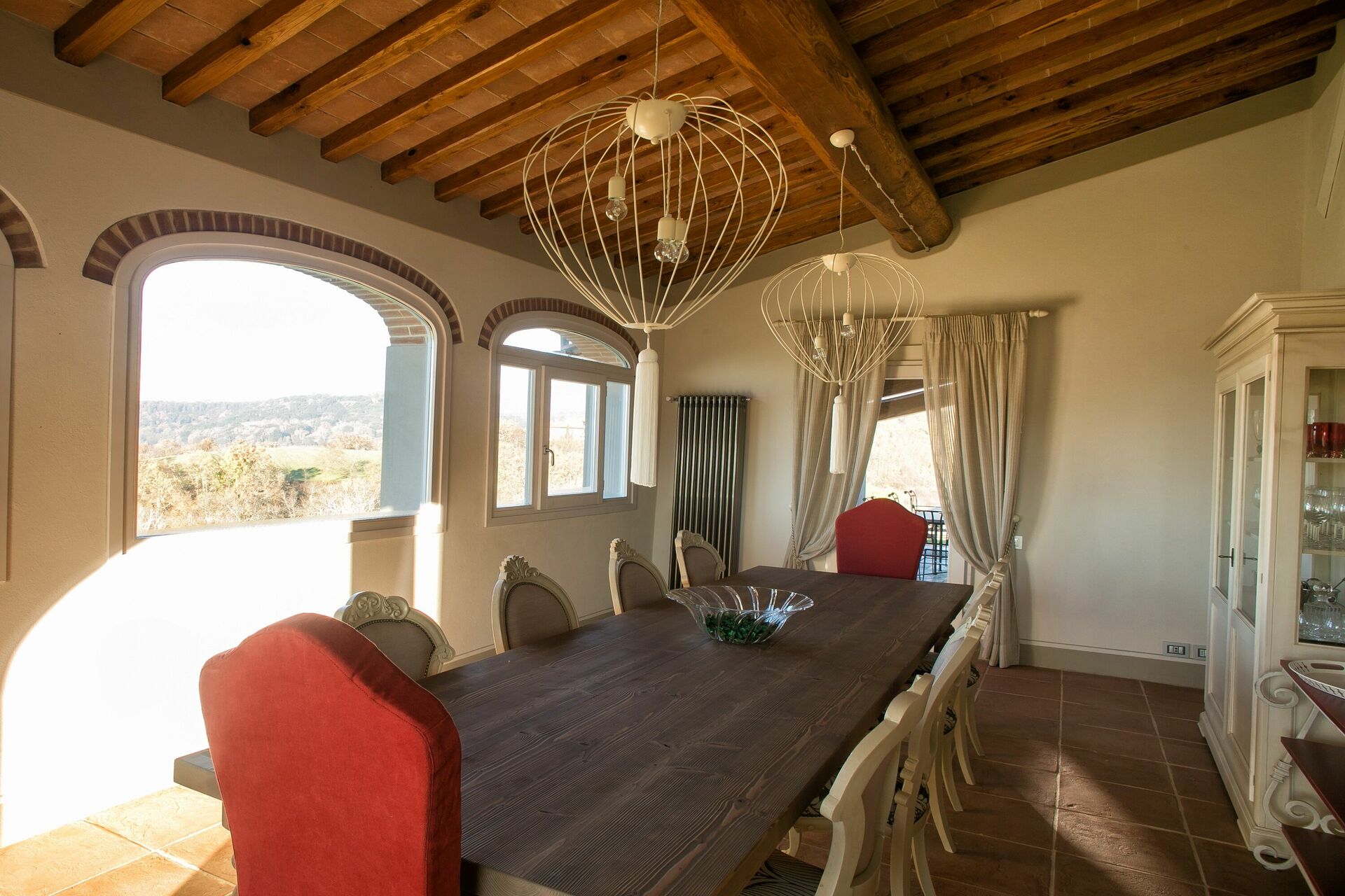 Wanneer u aankomt vindt u een fijne, schone en goed onderhouden woning met uitzicht over de heuvels ideaal voor een ontspannen vakantie in Toscane. Na een drukke dag toeren kunt u de tijd doorbrengen met vrienden en familie bij het zwembad, en genieten van een glaasje wijn - een perfecte manier om te ontspannen aan het einde van de dag. Dineren met vrienden en familie is een grote onderdeel van de Toscaanse cultuur. Maak gebruik van de keuken om maaltijden te bereiden met lokale producten terwijl u op vakantie bent. De keuken biedt o.a. een koffiezetapparaat, magnetron oven, broodrooster en ijskast, en natuurlijk ook voldoende servies en bestek voor minstens tien personen. Eet buiten net zoals een echte Toskaan, een tuin met tuinmeubilair is perfect om te genieten van het heerlijke eten, de familie en het prachtige Toscaanse klimaat.