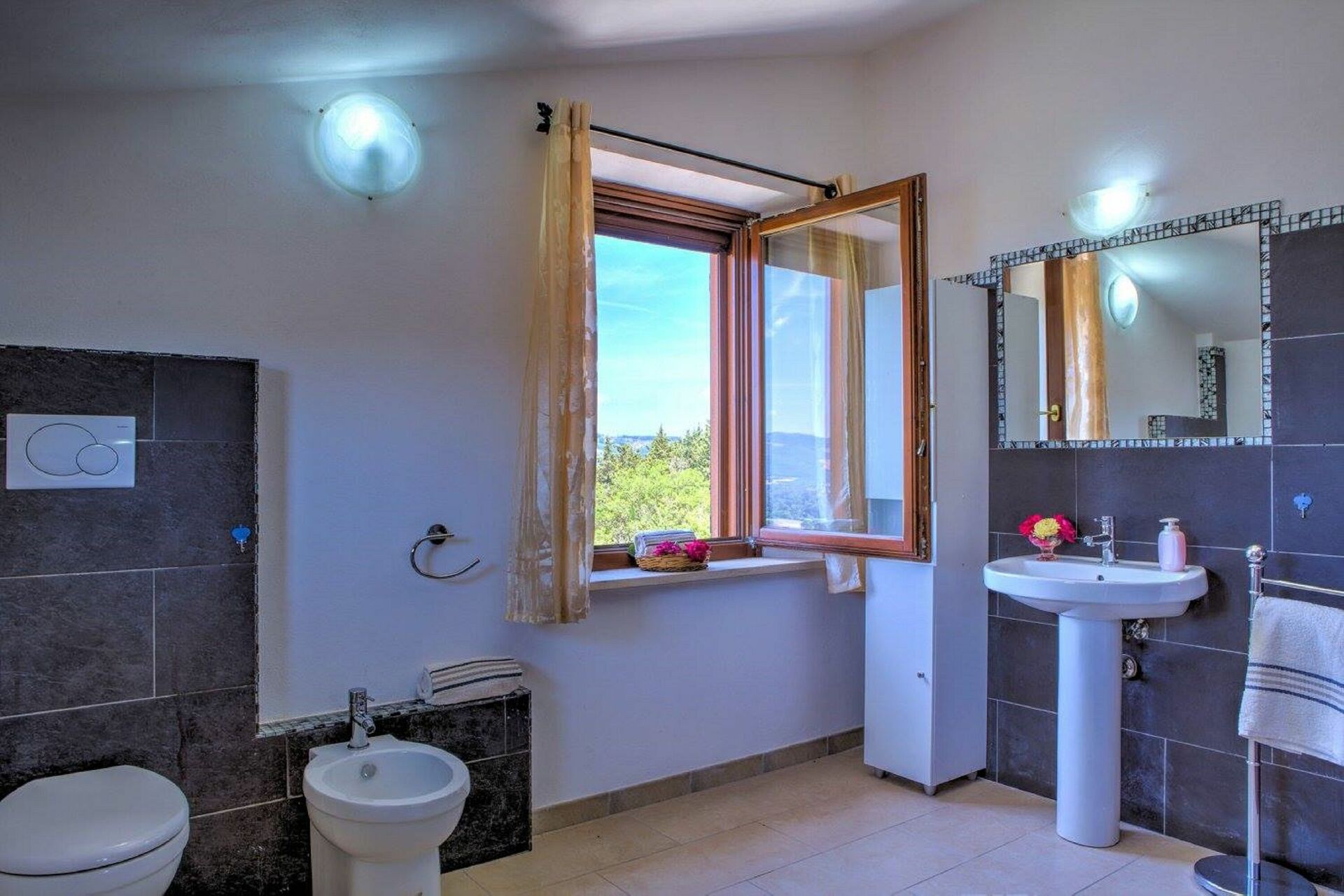 Badkamer: bubbelbad, wastafel, toilet , bidet.