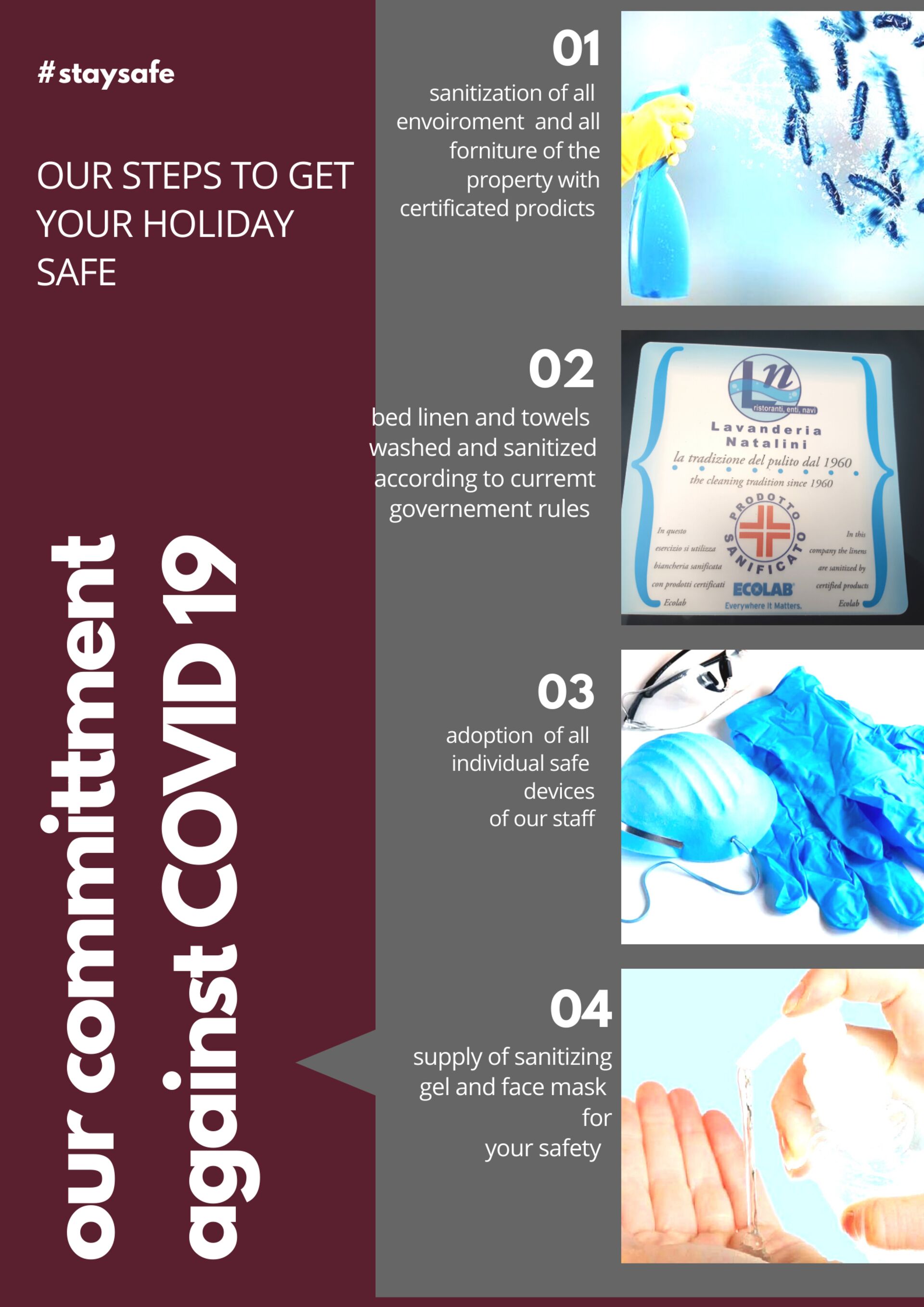 Keuken – woonkamer (30 m2): goed uitgeruste keuken, eettafel, vaatwasser, ijskast, diepvriezer, oven, italiaans koffiezetapparaat, koffiezetapparaat, tweepersoons-slaapbank, WIFI internet, tv, uitgang naar de tuin.