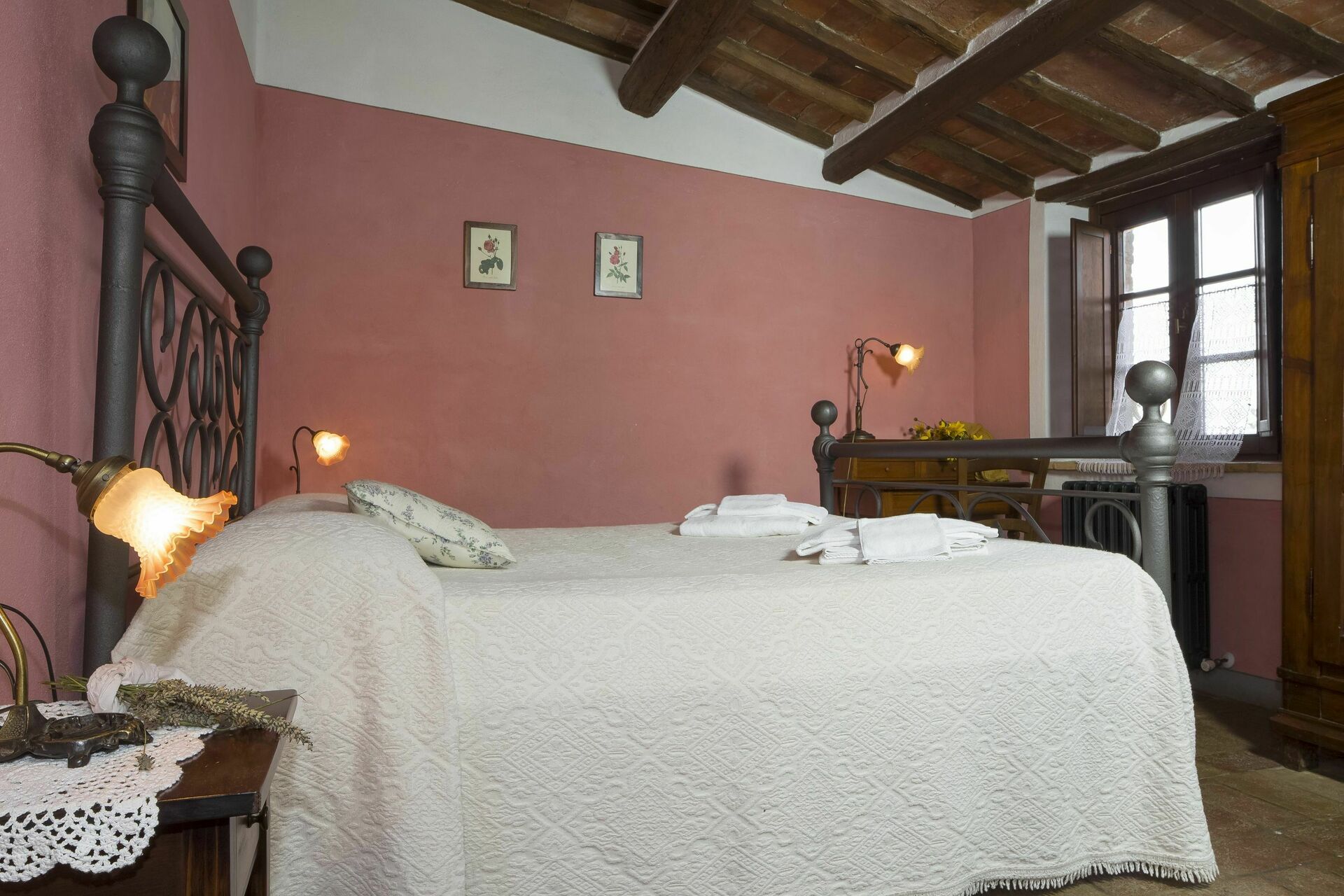 Slaapkamer met badkamer 2 (25 m2): twee eenpersoonsbedden, WIFI internet, satelliet tv, fauteuil, bureau, wastafel, toilet , bidet, douche, haardroger.