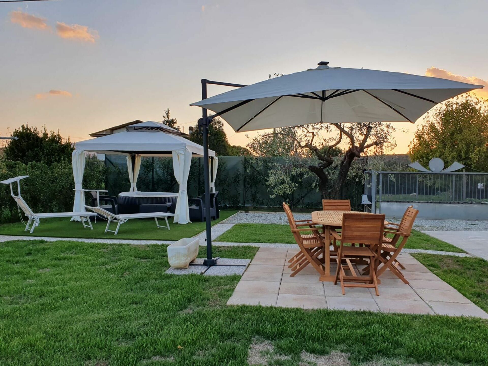 Tuin: zwembad, barbecue, eettafel, tuinmeubilair.
