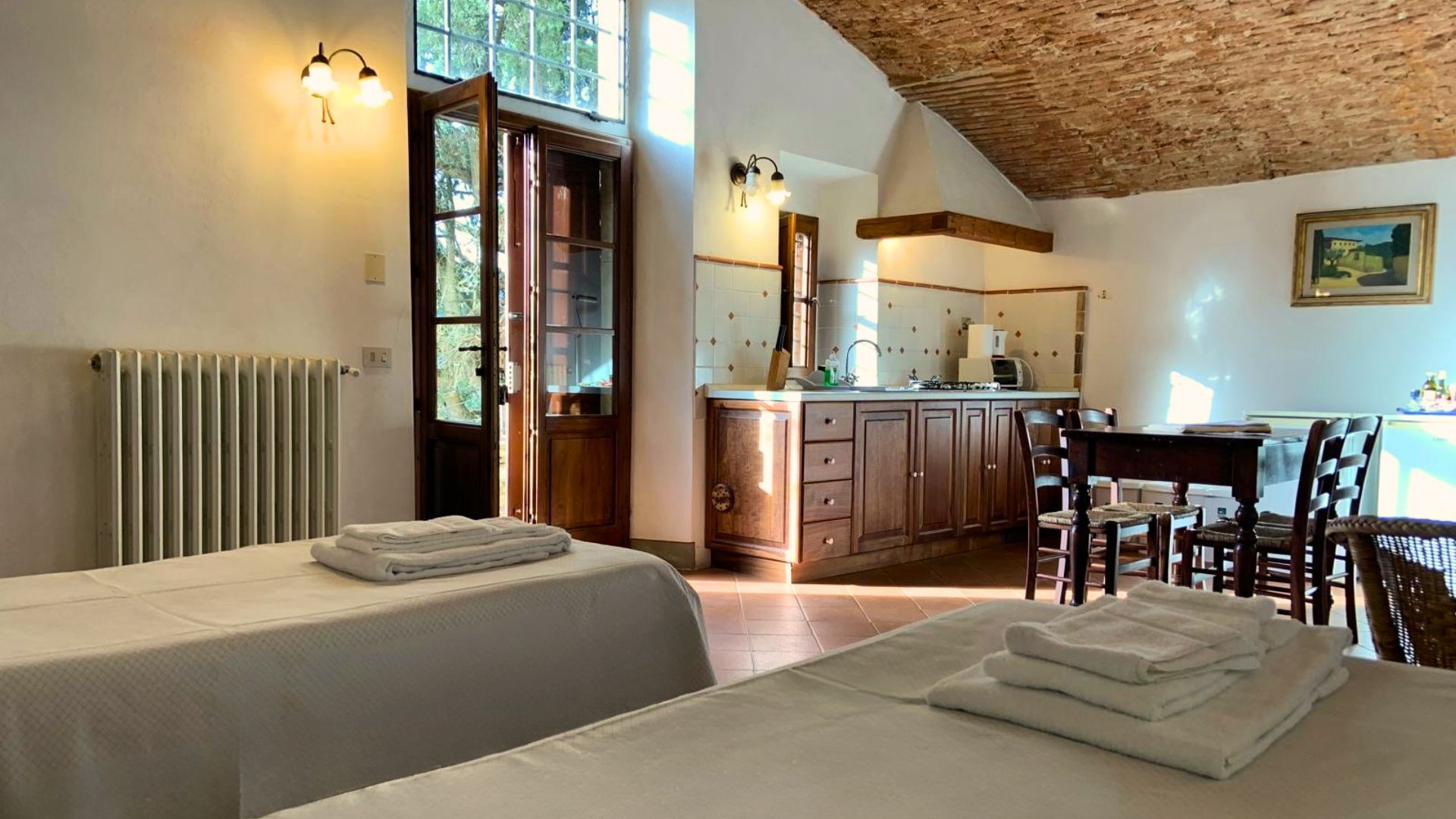 Zodra u aankomt wordt u welkom geheten door de eigenaar of beheerder en vindt u een prachtige, schone en goed onderhouden woning met uitzicht over de heuvels ideaal voor een rustige vakantie in Toscane. Hoe u de dagen ook doorbrengt - met excursies, winkelen, musea bezoek of rijdende door het prachtige landschap, zodra u thuis komt kunt u uitrusten samen met familie en vrienden bij het zwembad voor een perfecte afsluiting van nog weer een dag in Toscane. Ook zijn er buiten beschikbaar een barbecue en speeltuin. Dit vakantiehuis biedt meerdere units en dat is ideaal voor een groep vrienden of kenissen die samen reizen maar toch een eigen woon- en slaapruimte verkiezen terwijl de gemeenschappelijke ruimtes zoals bijvoorbeeld het zwembad en de tuin gedeeld worden met de rest van de groep. Elk appartement heeft een eigen compleet uitgeruste keuken waar men maaltijden kan bereiden.