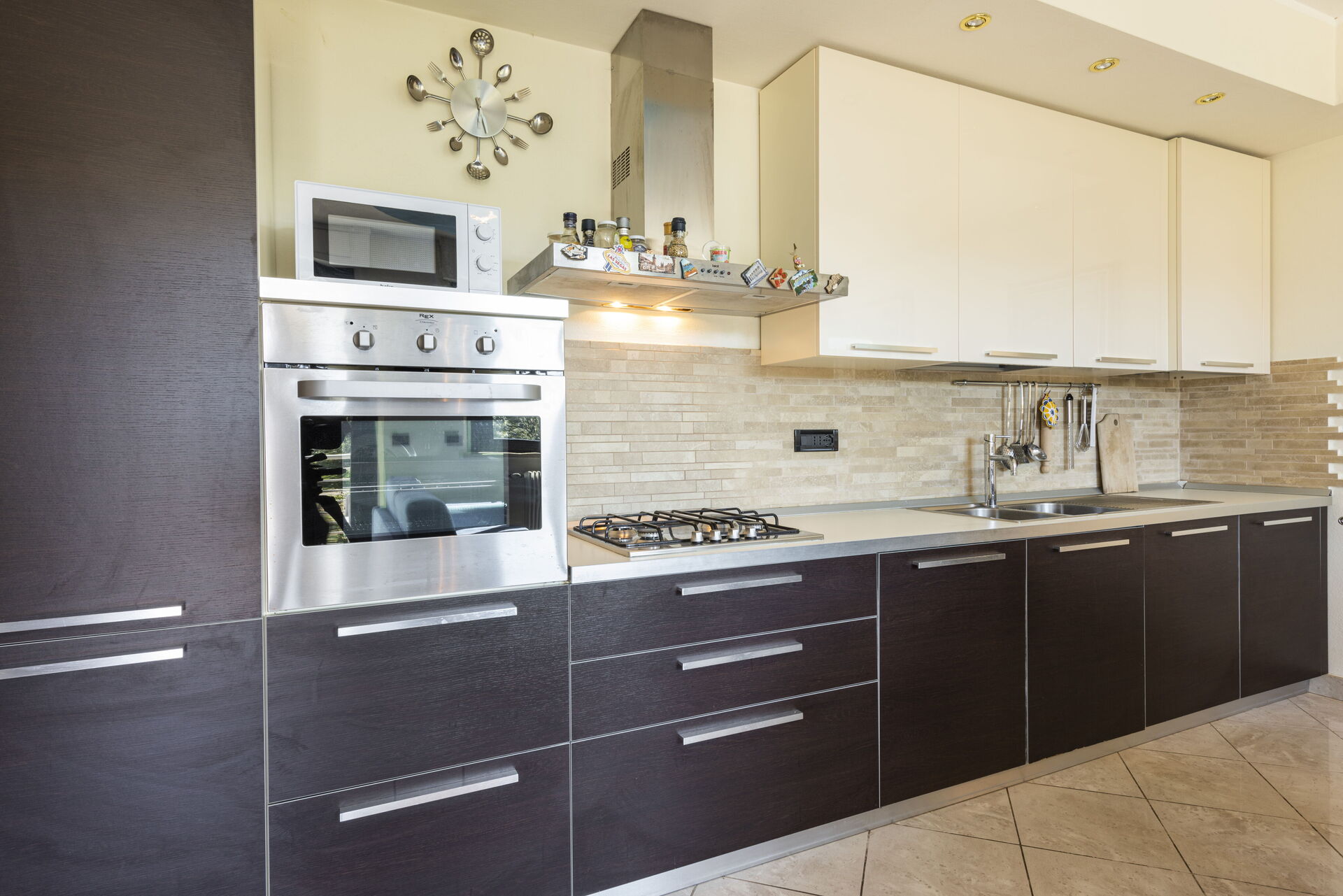 Keuken – woonkamer: eettafel (personen: 6), vaatwasser, ijskast, diepvriezer, magnetron, kookplaat, oven, broodrooster, italiaans koffiezetapparaat, wasmachine, tweepersoons-slaapbank, airconditioning, tv, uitgang naar het balkon.