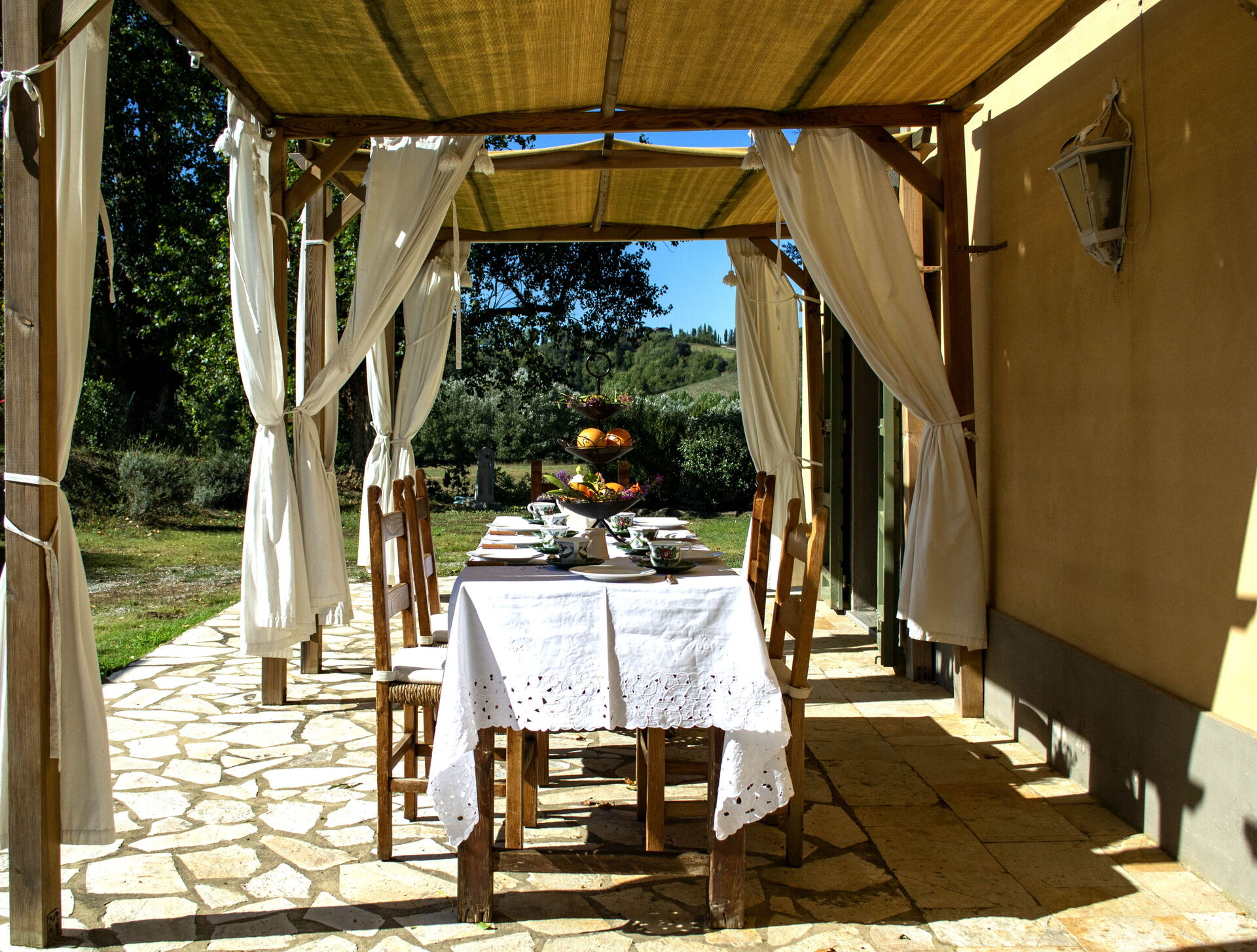 Bij aankomst vindt u een mooie, schone en goed onderhouden woning met uitzicht over de heuvels perfect voor een geweldige vakantie in Toscane. Hoe u de dagen ook doorbrengt - met excursies, musea bezoek, winkelen of rijdende door het prachtige landschap, zodra u thuis komt kunt u ontspannen samen met familie en vrienden bij het zwembad voor een perfecte afsluiting van nog weer een dag in Toscane. Als u van koken houdt is er een goed uitgeruste keuken met o.a. koffiezetapparaat, magnetron oven, broodrooster, fornuis en ijskast en natuurlijk voldoende servies en bestek voor tot acht personen. Als u liever buiten eet is er een terras waar u van het weer kan genieten terwijl u buiten eet.