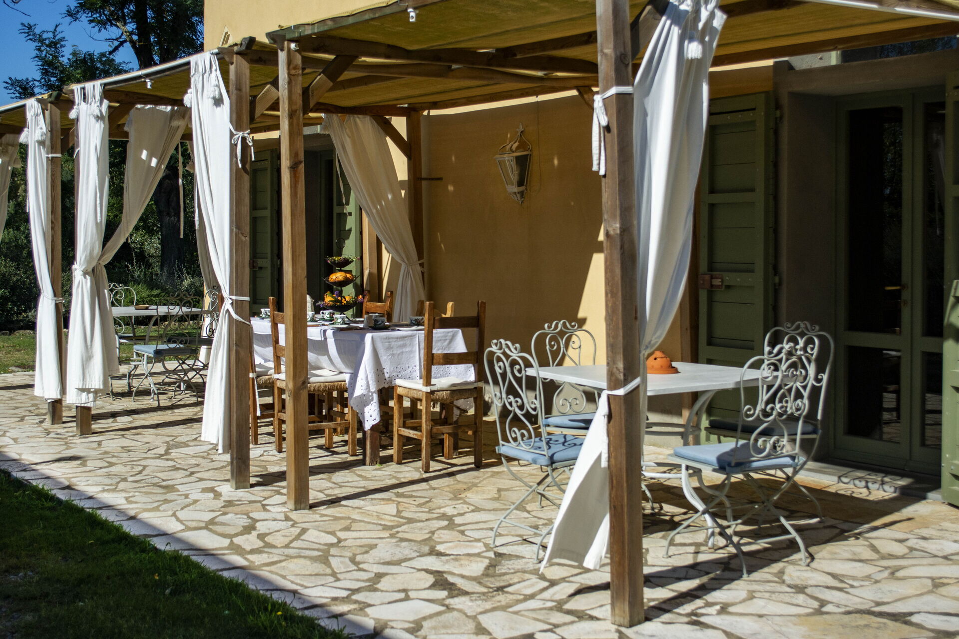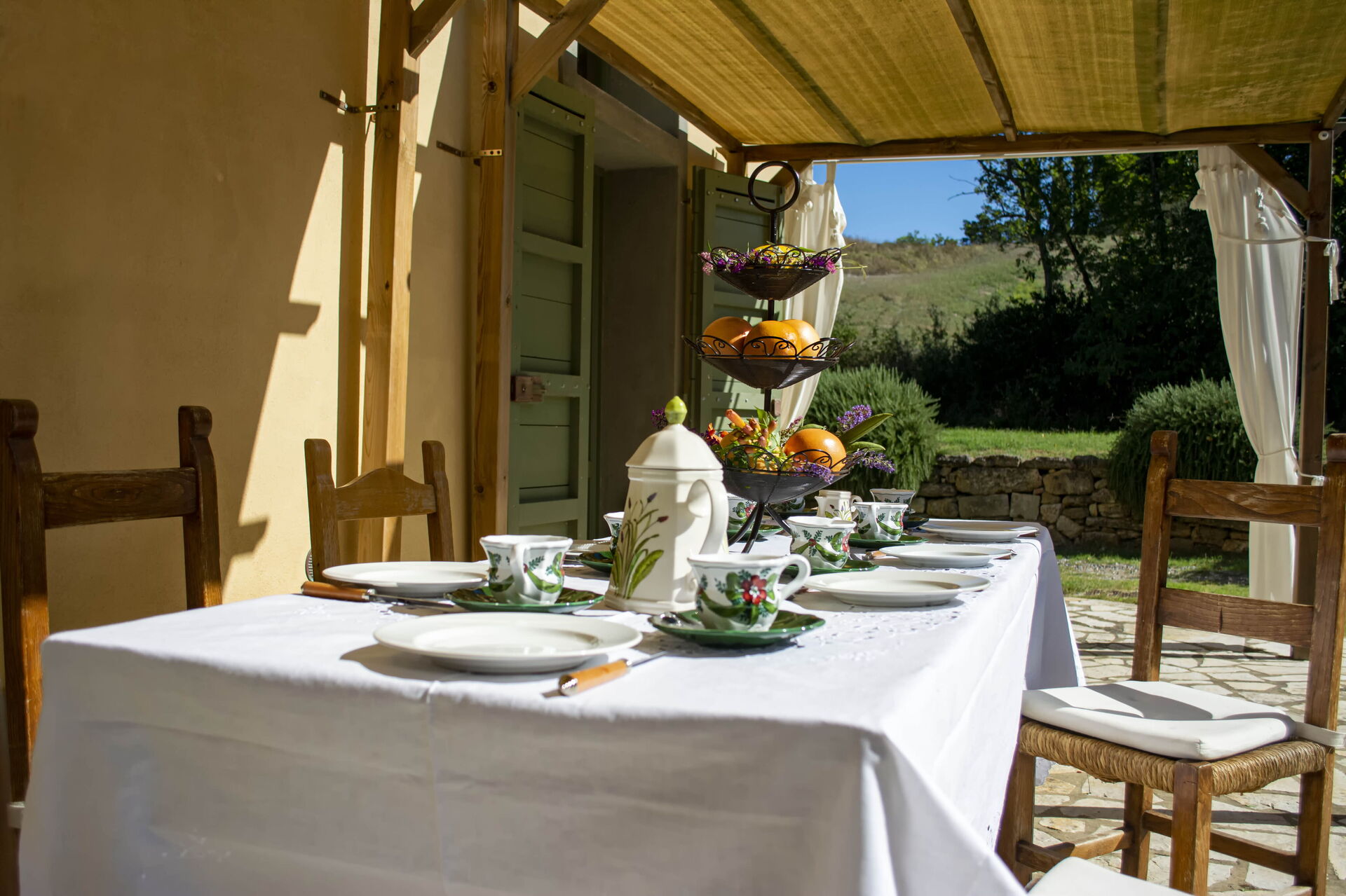 Terras: dineren in de buitenlucht, eettafel (personen: 8), WIFI internet, terrasmeubilair.