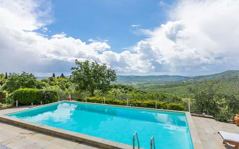 Cennina 2 km van Ambra: Mooi, gezellig landhuis "La Casa di Life", van 2 verdiepingen, uit de 16e eeuw, gerenoveerd, omgeven door bomen. 2 huizen in de woning. 3 appartementen in de woning. Huurobject bestaande uit hoofd-/ bijgebouw, in het gehucht Cennina, 3 km van het centrum van Ambra, zonnige, verhoogde ligging, 300 m van de bosrand, te midden van groen. Voor alleengebruik: terrein 10.000 m2 (omheind), tuin gazon en planten, openluchtzwembad omheind (10 x 5 m, 150 - 150 cm diepte, seizoensgebonden beschikbaarheid: 01.Mei. - 30.Sep.). Buitendouche, terras, tuinmeubelen, barbecue, onderhoud zwembad door de eigenaar/tuinman. Overdekte parkeerplaats bij het huis op het terrein. Oplaadstation. Winkel 3.5 km, levensmiddelenwinkel 3.5 km, supermarkt 3.5 km, restaurant 3 km, bakkerij 3 km, bushalte 3.5 km, treinstation "Bucine" 6 km, zandstrand "Marina di Grosseto" 100 km, thermaalbad "Rapolano Terme" 23 km, meer Trasimeno 65 km. Golfterrein (9 holes) 45 km, tennis 6 km. Attracties in de buurt: Siena 35 km, Arezzo 35 km, Firenze 63 km. Baby uitrusting (incl.). Groepen jongeren uitsluitend op aanvraag. Eigenaar woont in apart huisgedeelte. De eigenaar heeft een hond.