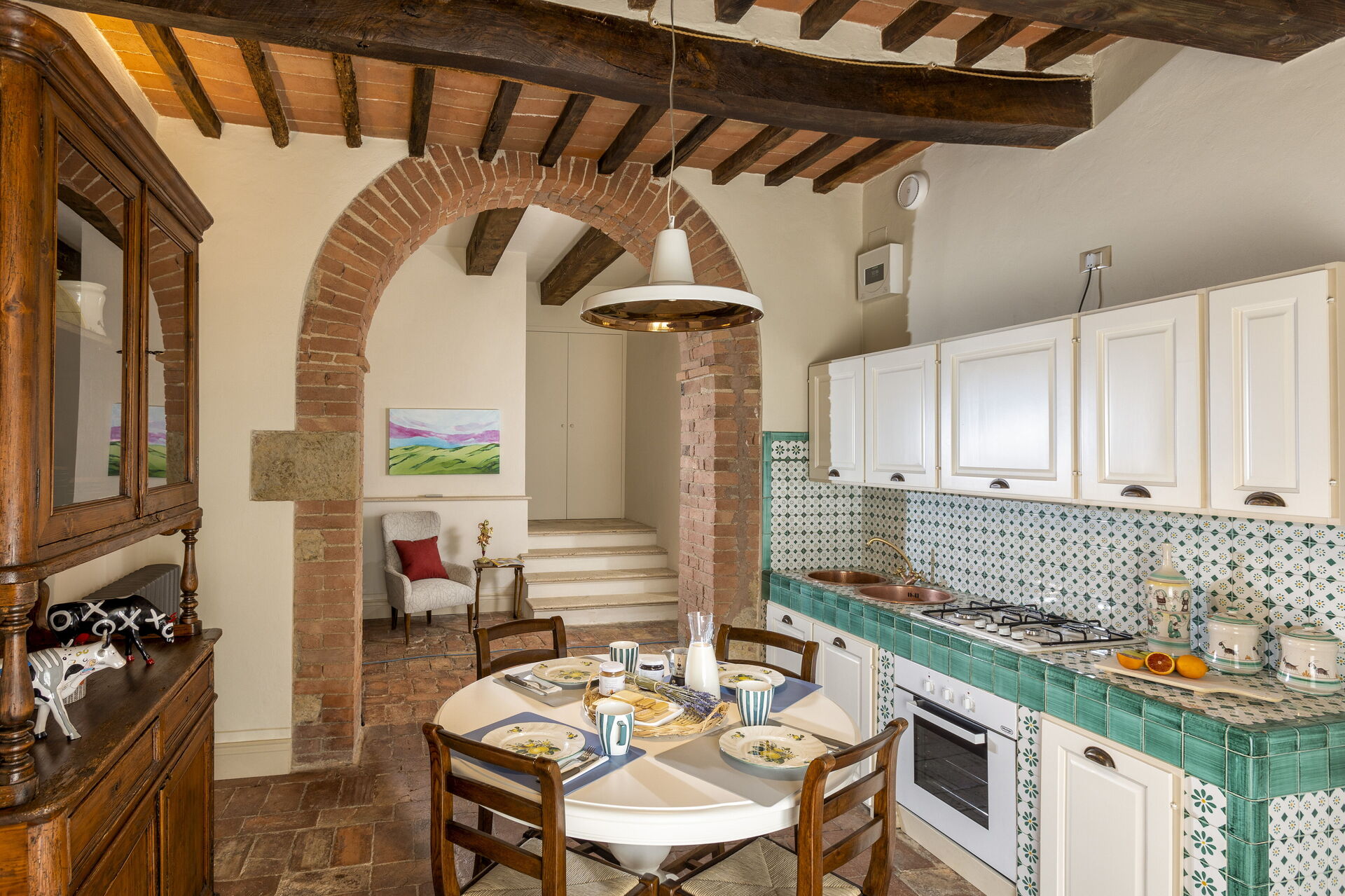 Bij aankomst wordt u welkom geheten door de eigenaar of beheerder en vindt u een fraaie, schone en goed onderhouden woning met uitzicht over de heuvels ideaal voor een geweldige vakantie in Toscane. Na een hectische dag musea bezoeken kunt u de tijd doorbrengen met vrienden en familie en genieten van een glaasje wijn - een perfecte manier om te ontspannen aan het einde van de dag. Op het terrein is er voor uw genoegen een terras, barbecue en jacuzzi. Dineren met vrienden en familie is een grote onderdeel van de Toscaanse cultuur. Maak gebruik van de goed uitgeruste keuken om maaltijden te bereiden met lokale producten terwijl u op vakantie bent. De keuken biedt o.a. een koffiezetapparaat, broodrooster, fornuis en ijskast, en natuurlijk ook voldoende servies en bestek voor minstens 16 personen.