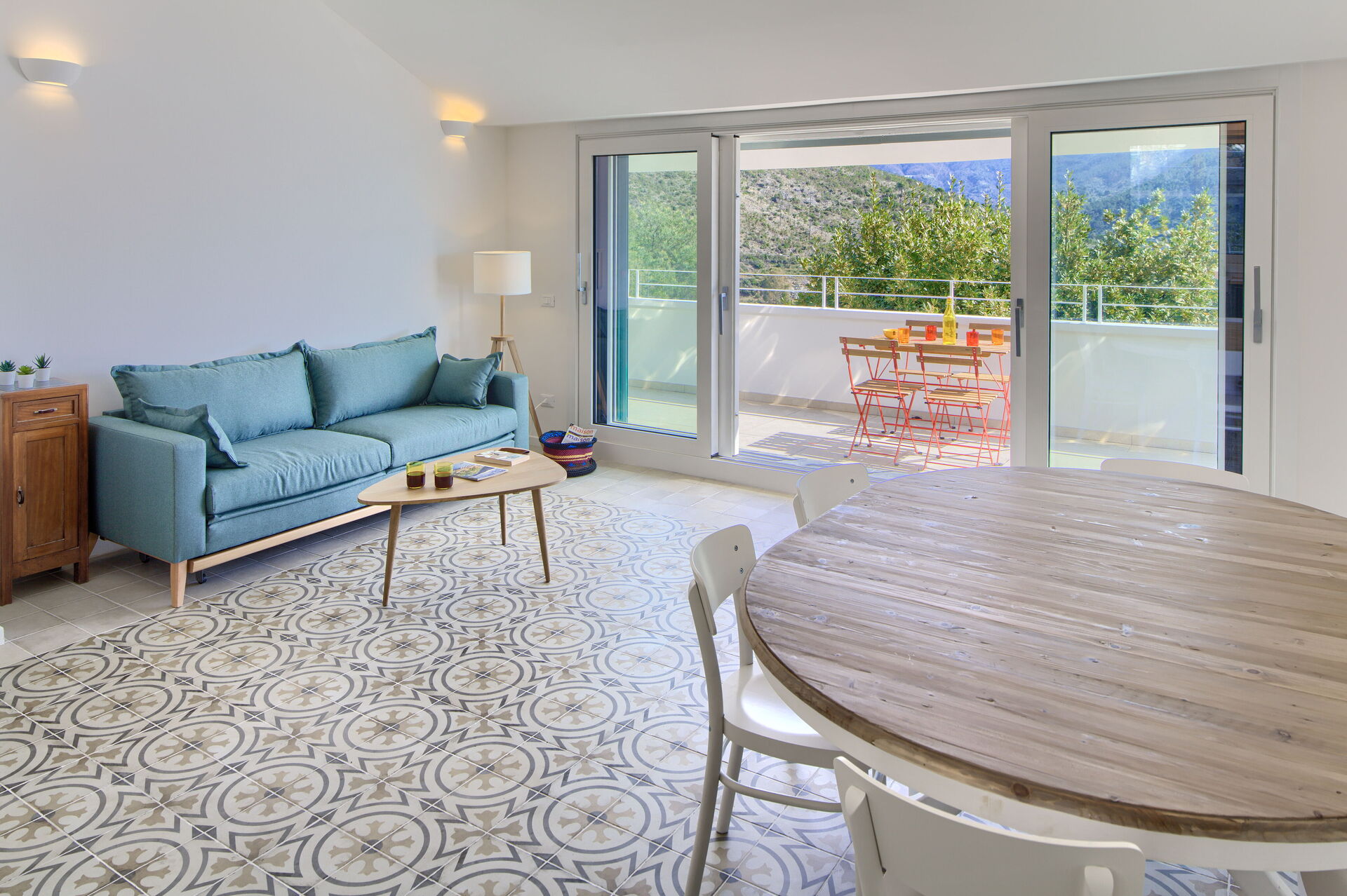 Fantastisch terras met panoramisch uitzicht. Directe toegang tot het terras vanuit de woonkamer en twee slaapkamers.