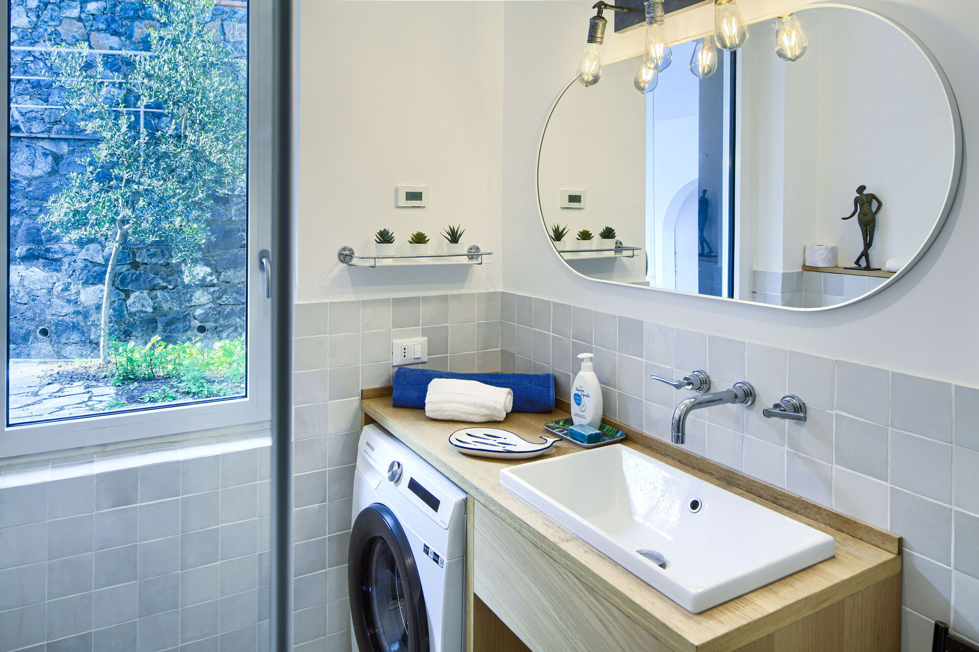Twee badkamers met douche. Wasmachine.