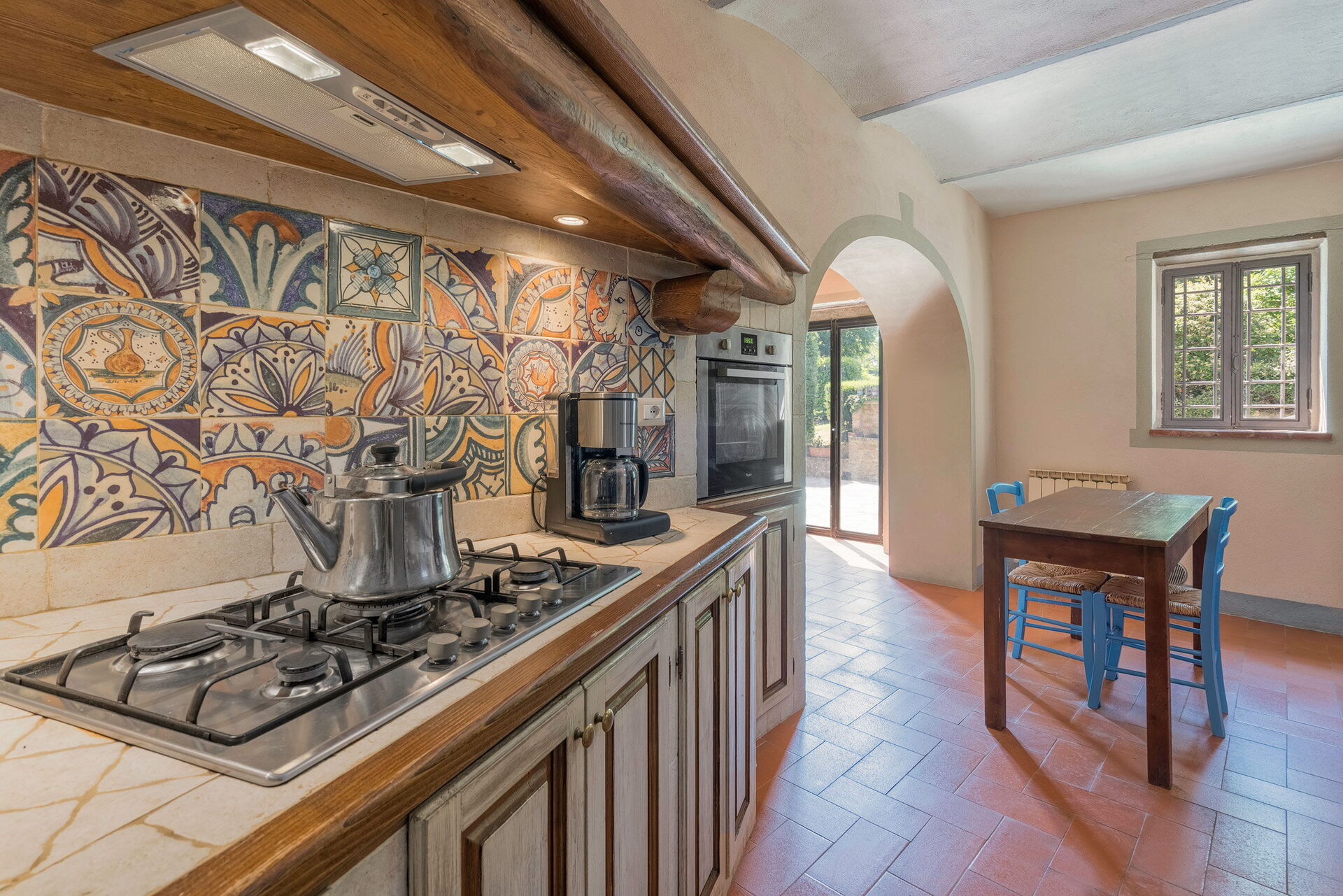 Bij aankomst vindt u een mooie, schone en goed onderhouden woning met uitzicht over de heuvels perfect voor een geweldige vakantie in Toscane. Hoe u de dagen ook doorbrengt - musea bezoek, met excursies, winkelen of rijdende door het prachtige landschap, zodra u thuis komt kunt u uitrusten samen met familie en vrienden bij het zwembad voor een perfecte afsluiting van nog weer een dag in Toscane. Ook zijn er buiten beschikbaar een barbecue en terras. Eten met vrienden en familie is een grote onderdeel van de Toscaanse cultuur. Maak gebruik van de goed uitgeruste keuken om maaltijden te bereiden met lokale producten terwijl u op vakantie bent. De keuken biedt o.a. een koffiezetapparaat, broodrooster, fornuis en ijskast, en natuurlijk ook voldoende servies en bestek voor minstens 13 personen.