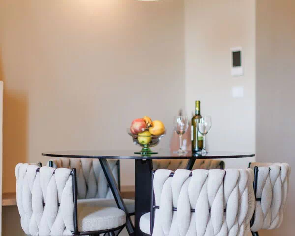 Woonkamer: bank (personen: 6), open haard, eettafel (personen: 6), WIFI internet, airconditioning, satelliet tv, hor, uitgang naar het balkon.