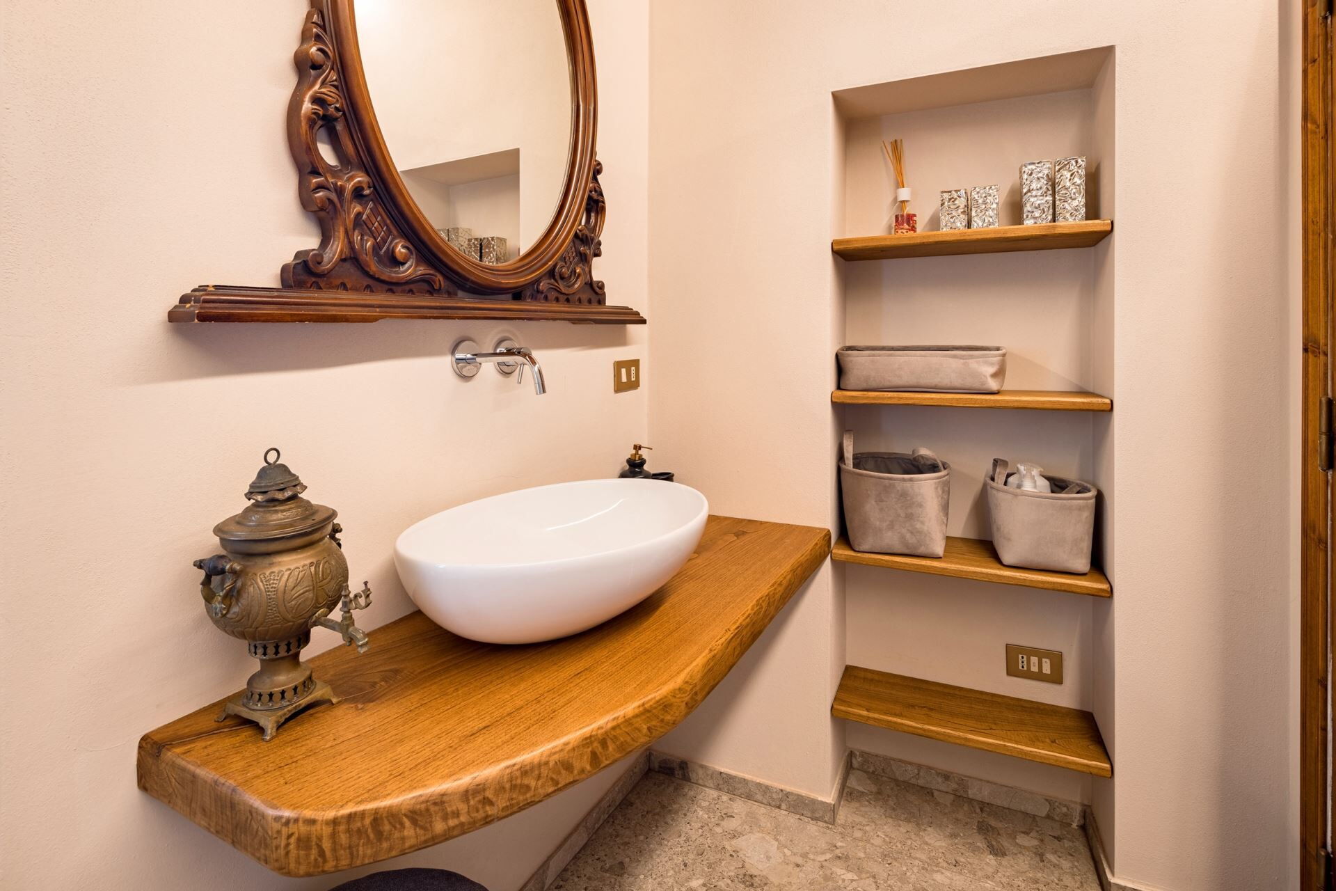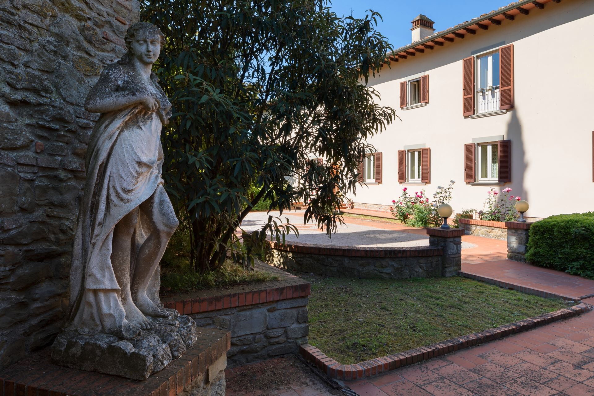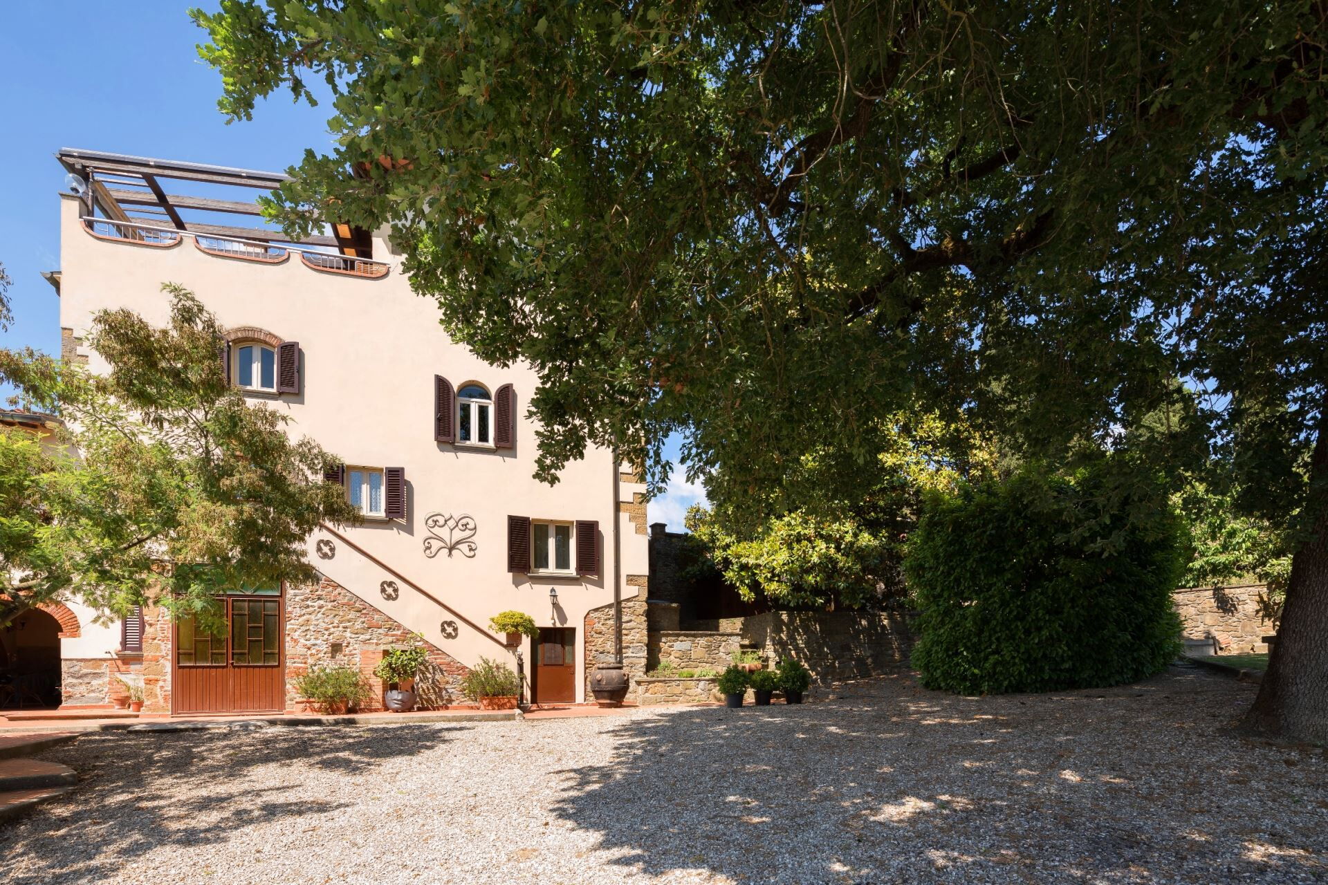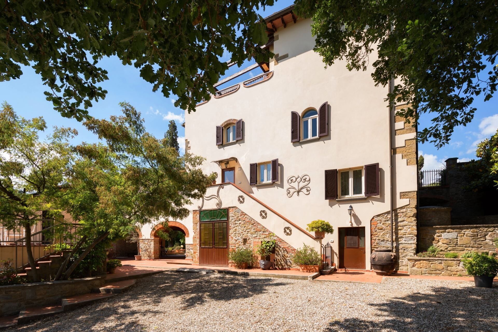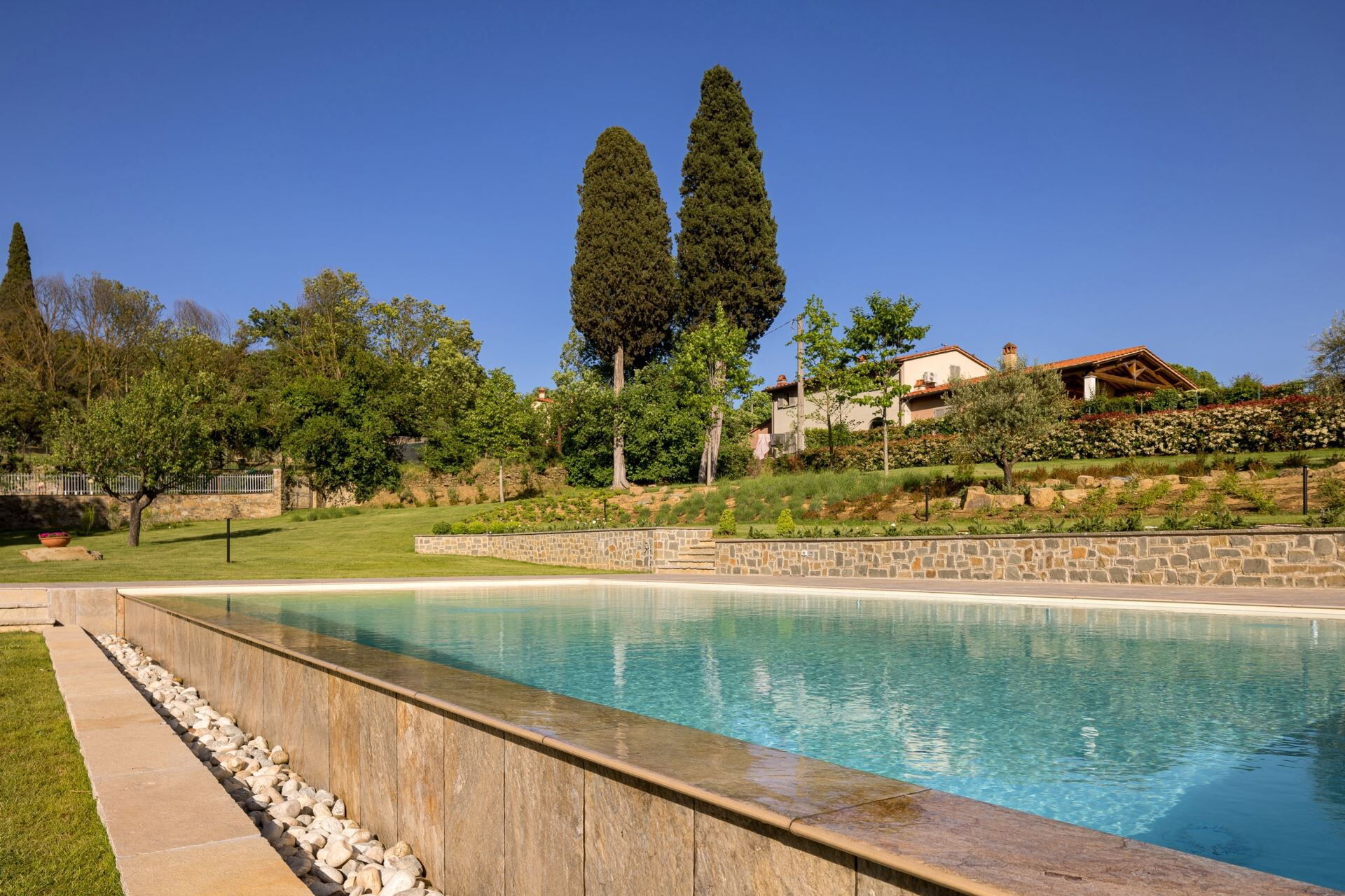 FIRST FLOOR with entrance from external staircase onto large living-dining room with double sofa bed, kitchen-dining room, double bedroom and bathroom with shower. From the living room, down some steps, there is a twin bedroom and private bathroom with shower.