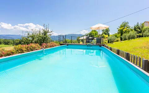 "Villa Colle di Giotto", villa 6-kamers 200 m2 op 2 verdiepingen. Ruim, volledig gerenoveerd in 2022, comfortabel en smaakvol ingericht: hal. Groot woon-/eetkamer met TV (Flatscreen TV). Uitgang naar de tuin. Keuken (oven, afwasmachine, Gasfornuis, 4 kookpitten (vlammen), broodrooster, waterkoker, magnetron, diepvriezer, elektrische koffiemachine, pizzaoven) met eettafel, open haard. Aparte WC. Bovenverdieping: 4 2-pers. kamers. 3 douche/bidet/WC's. Gas-verwarming. Natuurstenen vloeren. Zithoek in de tuin, gazon. Terrasmeubelen, balkonmeubilair, barbecue, bergruimte. Zeer mooi panoramazicht op het landschap. Ter beschikking: wasmachine, strijkijzer, klamboe, kinderstoel, kinderbed tot 2 jaar, haardroger. Internet (Internet (WiFi), gratis). Parkeerplaats bij het huis. Niet rokers woning. Het zwembad genoemd in de beschrijving is voor privé gebruik.