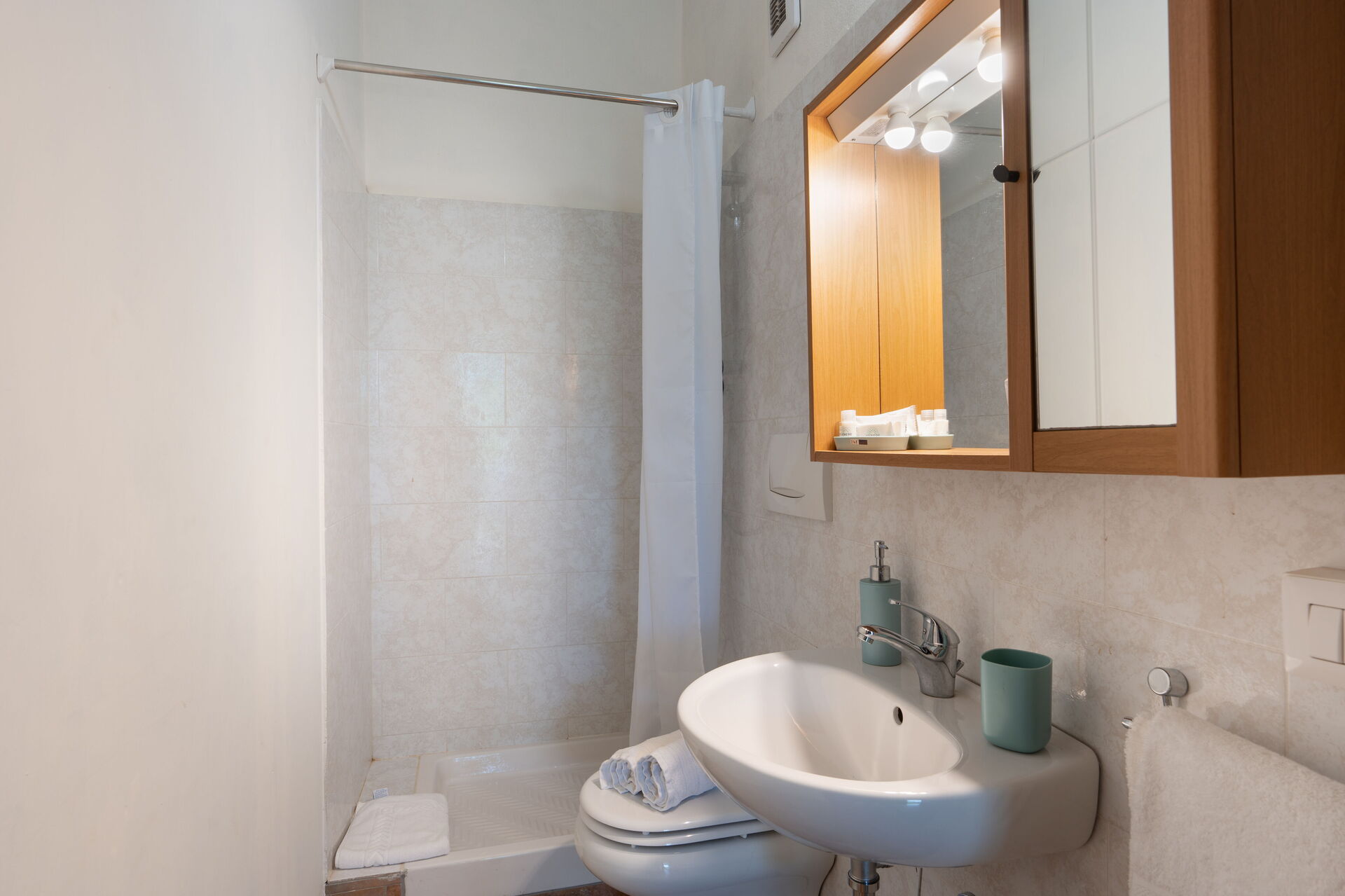 Slaapkamer met badkamer 5: tweepersoonsbed, eenpersoonsbed, WIFI internet, hor, satelliet tv, ijskast, wastafel, toilet , douche, haardroger.