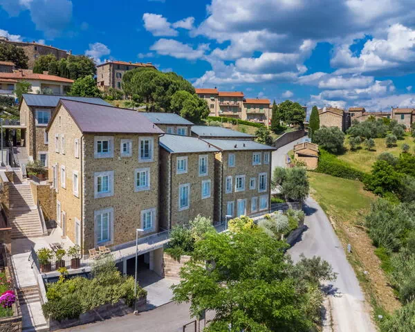Castelnuovo dell'Abate 10 km van Montalcino: Moderne residentie "Casa del Sole", van 2 verdiepingen, bouwjaar 2020, omgeven door velden en wijngaarden. 20 appartementen in de woning. In de wijk Castelnuovo dell'Abate, 20 km van het centrum van San Quirico d'orcia, 20 km van het centrum van Bagno Vignoni, 30 km van het centrum van Pienza, zonnige, verhoogde ligging, 300 m van de bosrand, 55 km van zee, te midden van groen. Parkeerplaats bij het huis. Levensmiddelenwinkel 300 m, supermarkt 10 km, restaurant 300 m, bar, fietsverhuur 10 km, bushalte 300 m, zandstrand "Marina di Grosseto" 55 km, thermaalbad "Bagni San Filippo" 25 km. Wandelroutes 300 m vanaf het huis. Attracties in de buurt: Amiata 33 km, Montepulciano 42 km, Siena 47 km, Castiglione della Pescaia 73 km. Baby uitrusting.