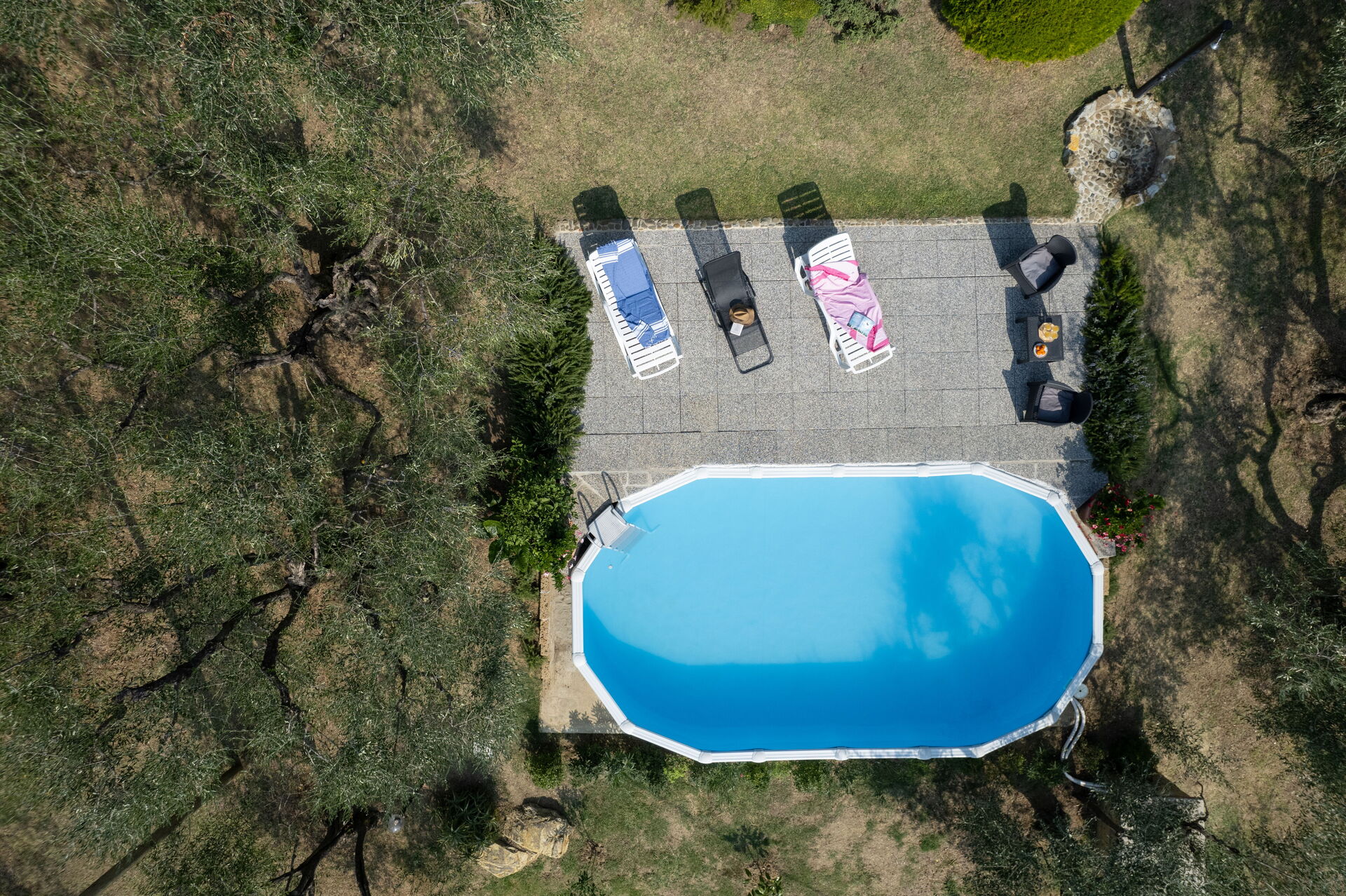 Tuin (3000 m2): zwembad (privé, breedte: 4m, lengte: 8m, diepte: 1.3m, buiten), douche, dineren in de buitenlucht, eettafel (personen: 6), gazebo, tuinmeubilair, twee ligstoelen.