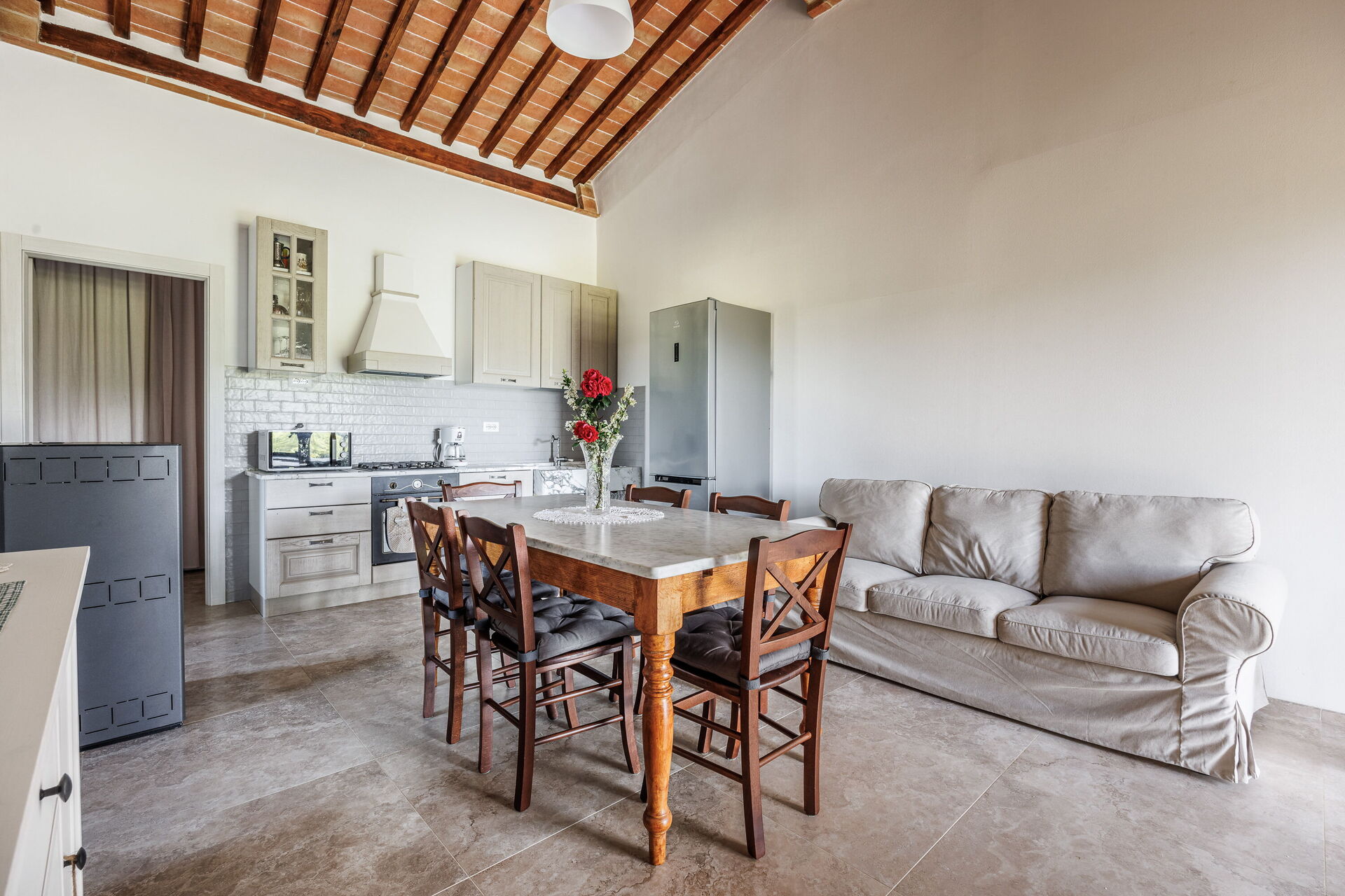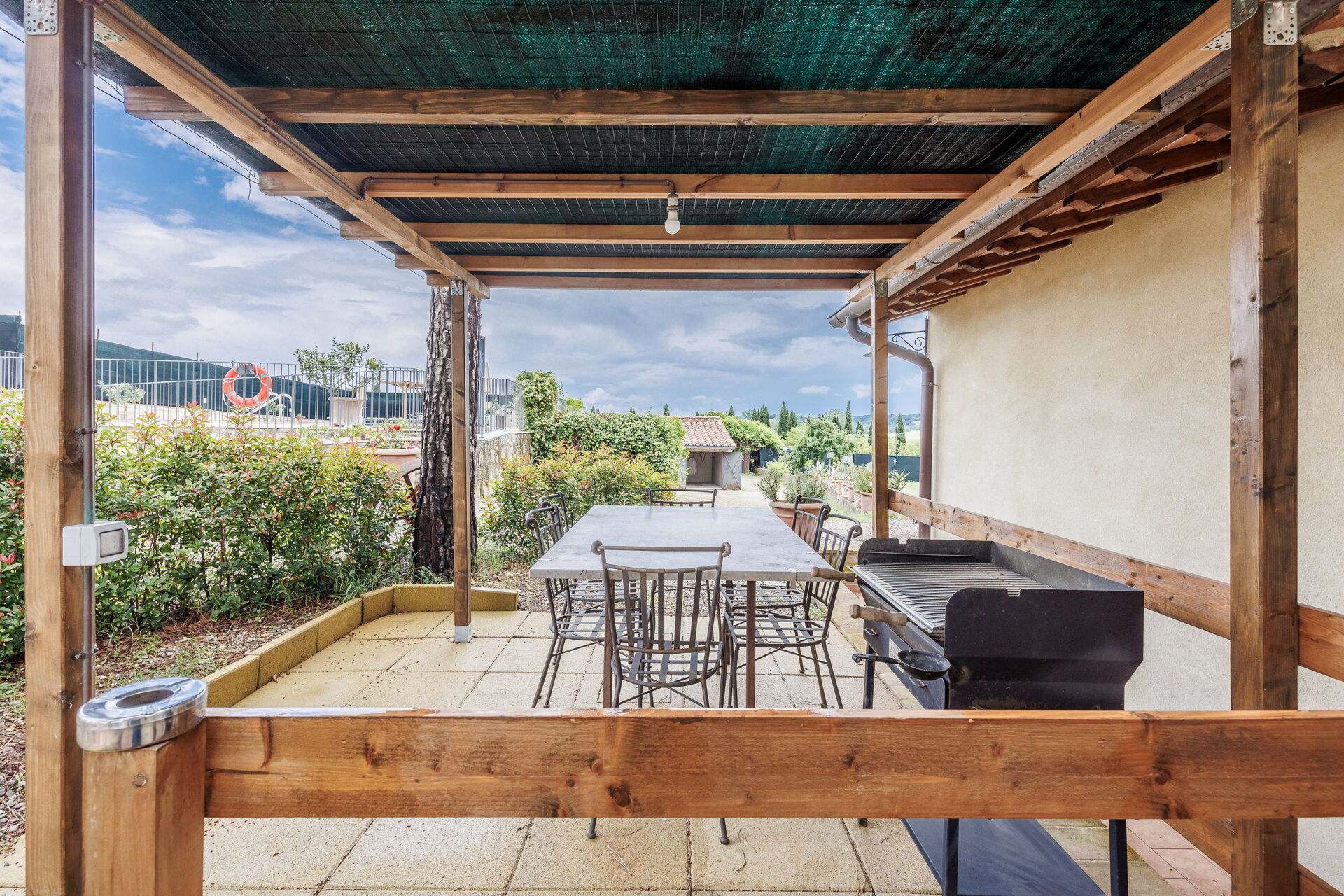Bij aankomst vindt u een fraaie, schone en goed onderhouden woning met uitzicht over de heuvels perfect voor een rustige vakantie in Toscane. Na een drukke dag musea bezoeken kunt u de tijd doorbrengen met vrienden en familie bij het zwembad, en genieten van een glaasje wijn - een perfecte manier om te ontspannen aan het einde van de dag. Dineren met vrienden en familie is een grote onderdeel van de Toscaanse cultuur. Maak gebruik van de goed uitgeruste keuken om maaltijden te bereiden met lokale producten terwijl u op vakantie bent. De keuken biedt o.a. een koffiezetapparaat, magnetron oven, fornuis en ijskast, en natuurlijk ook voldoende servies en bestek voor minstens acht personen.