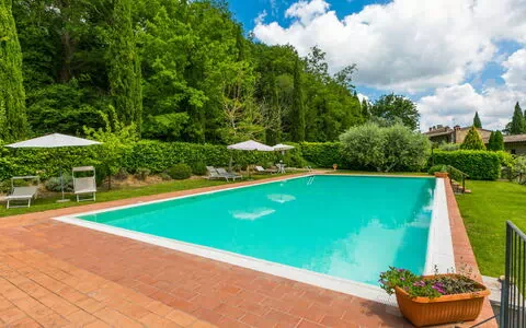 Borgo Roccaia 6 km van San Gimignano: Residentie "Borgo Roccaia", gerenoveerd in 2020, omgeven door bomen en wijngaarden. 20 huizen in de woning. 6 km van het centrum van San Gimignano, geïsoleerde ligging op een heuvel, te midden van groen. Voor medegebruik: wild terrein, openluchtzwembad omheind (9 x 18 m, seizoensgebonden beschikbaarheid: 01.Jun. - 30.Sep. openingstijden zwembad: 09:00-20:00). Buitendouche, terras, tuinmeubelen, onderhoud zwembad door de eigenaar/tuinman. 1 km lange rommelige, smalle toegangsweg tot het terrein. 50 m voetpad naar het huis. Parkeerplaats op het terrein. Levensmiddelenwinkel 2 km, supermarkt 7 km, restaurant 2 km, bushalte 2 km, treinstation "Certaldo" 7 km, zandstrand "Cecina Mare" 90 km. Attracties in de buurt: San Gimignano 7 km, Certaldo 7 km, Volterra 38 km, Siena 42 m, Firenze 53 m. Auto noodzakelijk. Niet geschikt voor kleine kinderen niet geschikt voor kinderen onder 5 jaar. Laden en lossen van de baggage is mogelijk bij het huis.