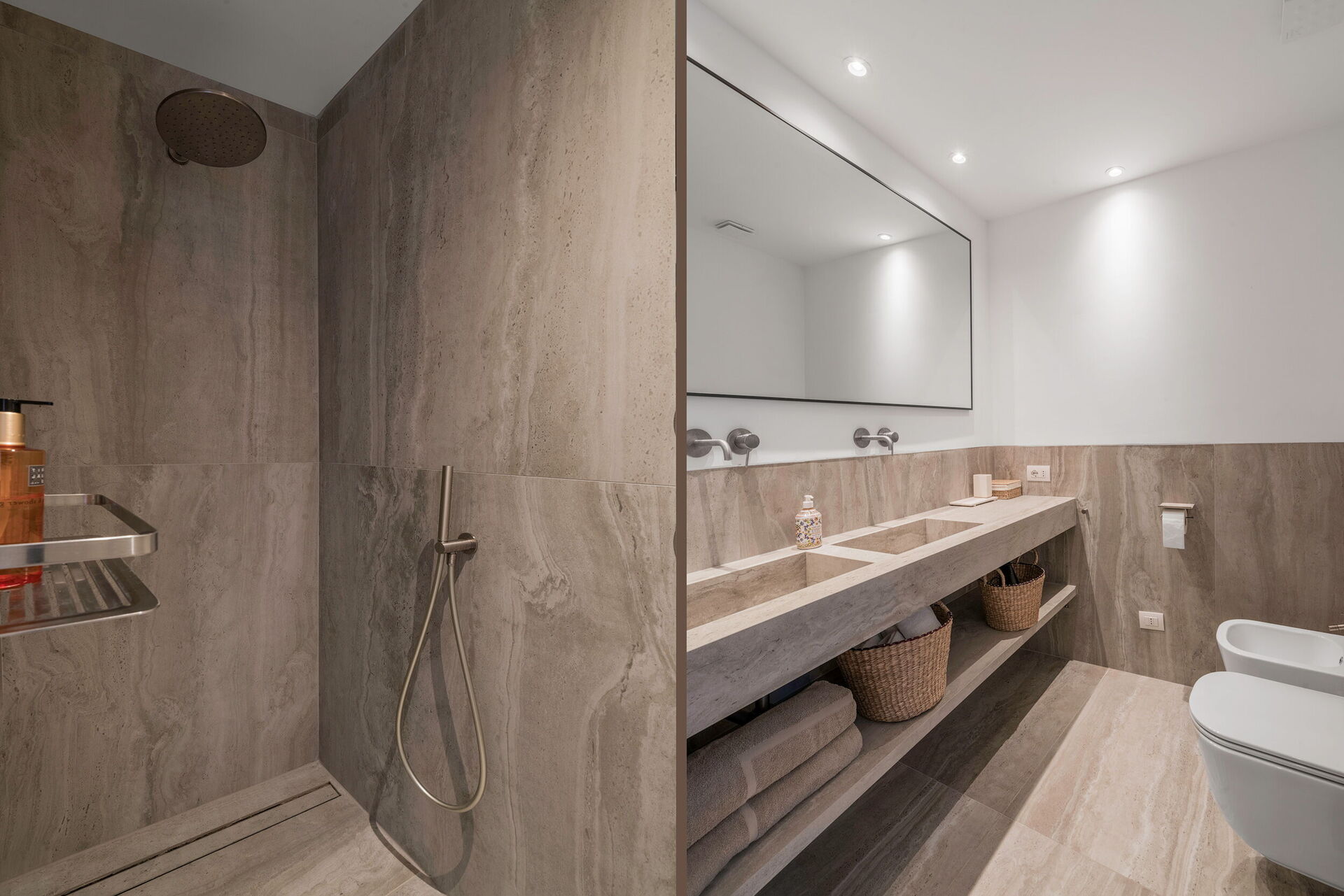 Badkamer: dubbele wastafel, toilet , douche, WIFI internet.