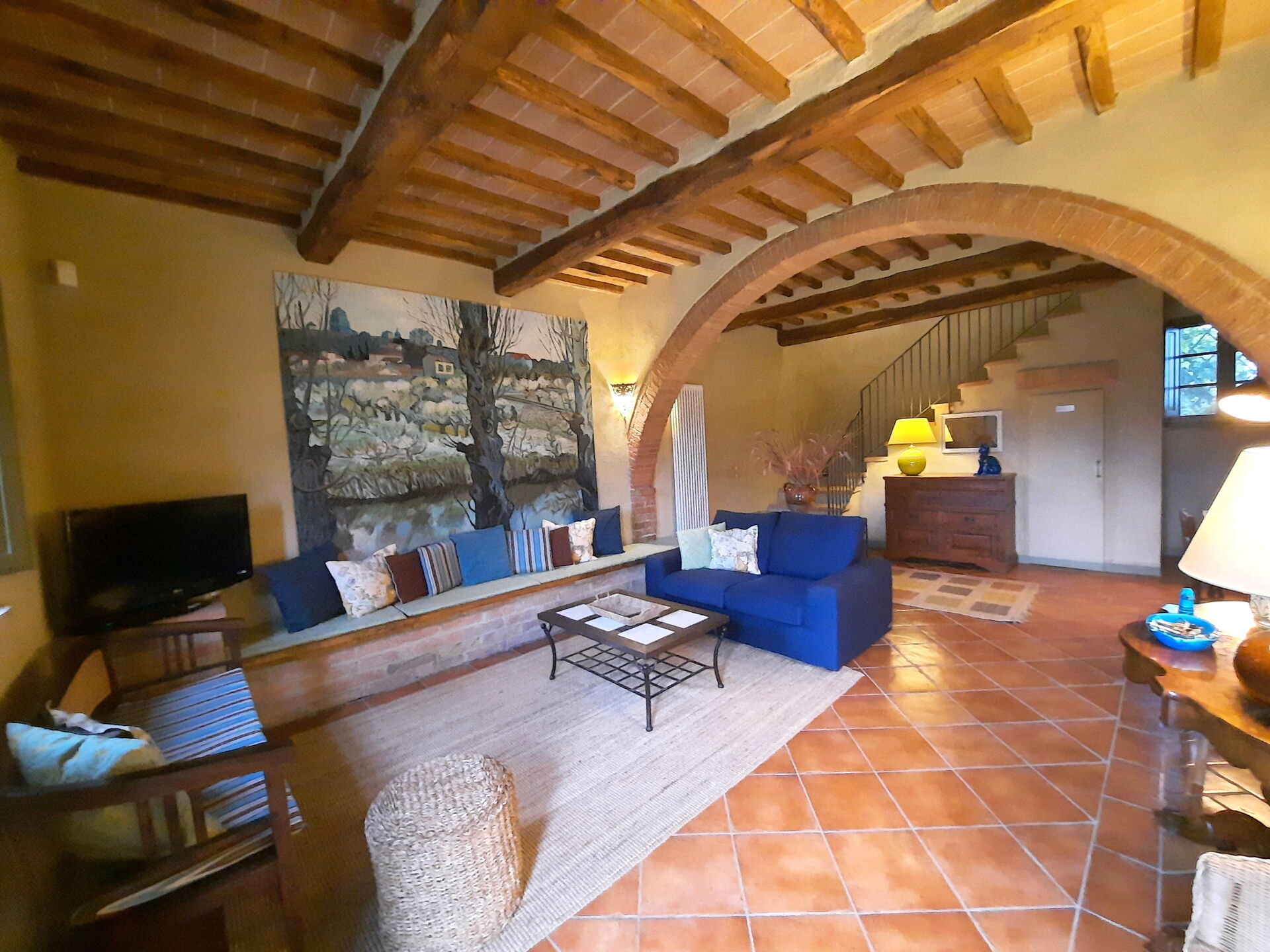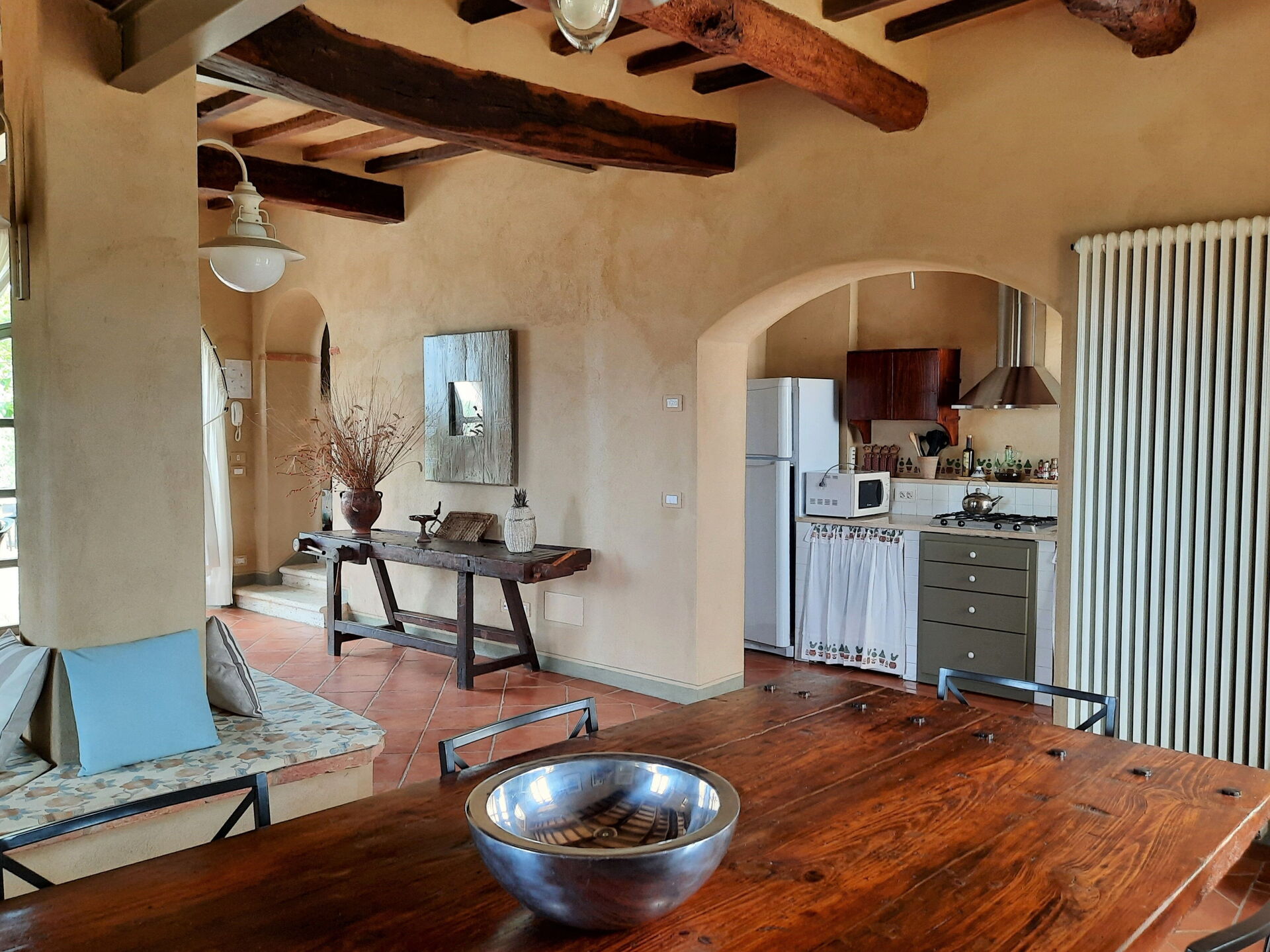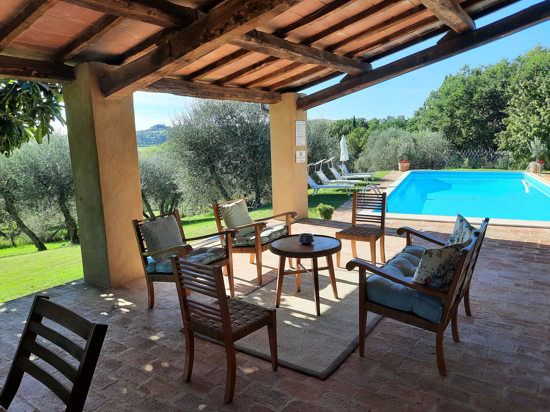 Wanneer u aankomt wordt u welkom geheten door de eigenaar of beheerder en vindt u een mooie, schone en goed onderhouden woning met uitzicht over de heuvels ideaal voor een geweldige vakantie in Toscane. Hoe u de dagen ook doorbrengt - met excursies, musea bezoek, winkelen of rijdende door het prachtige landschap, zodra u thuis komt kunt u uitrusten samen met familie en vrienden bij het zwembad voor een perfecte afsluiting van nog weer een dag in Toscane. Buiten zijn er ook een terras en barbecue. Als u van koken houdt is er een goed uitgeruste keuken met o.a. koffiezetapparaat, magnetron oven, broodrooster, fornuis en ijskast en natuurlijk voldoende servies en bestek voor tot tien personen. Als u liever buiten eet is er een veranda met tuinmebilair waar u van het weer kan genieten terwijl u buiten eet.