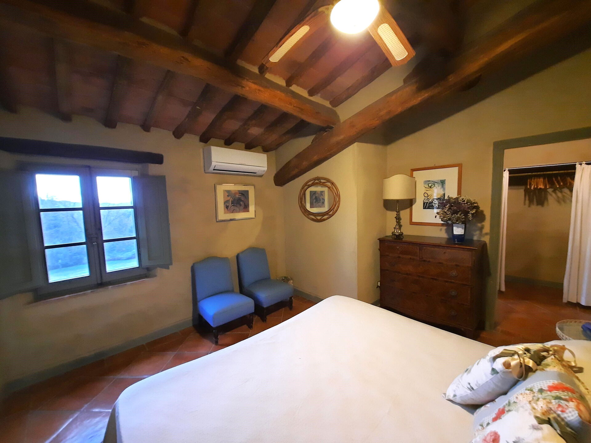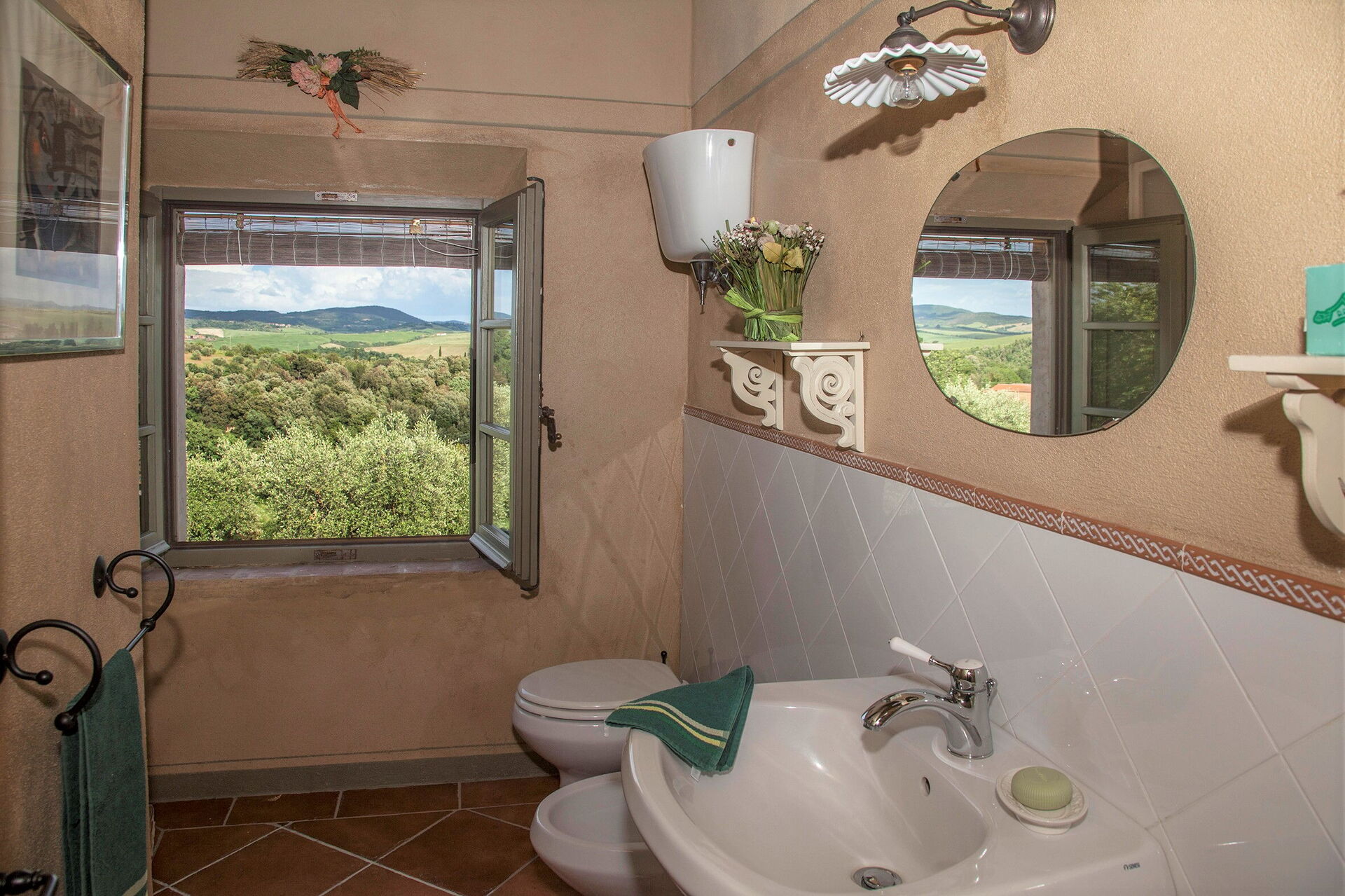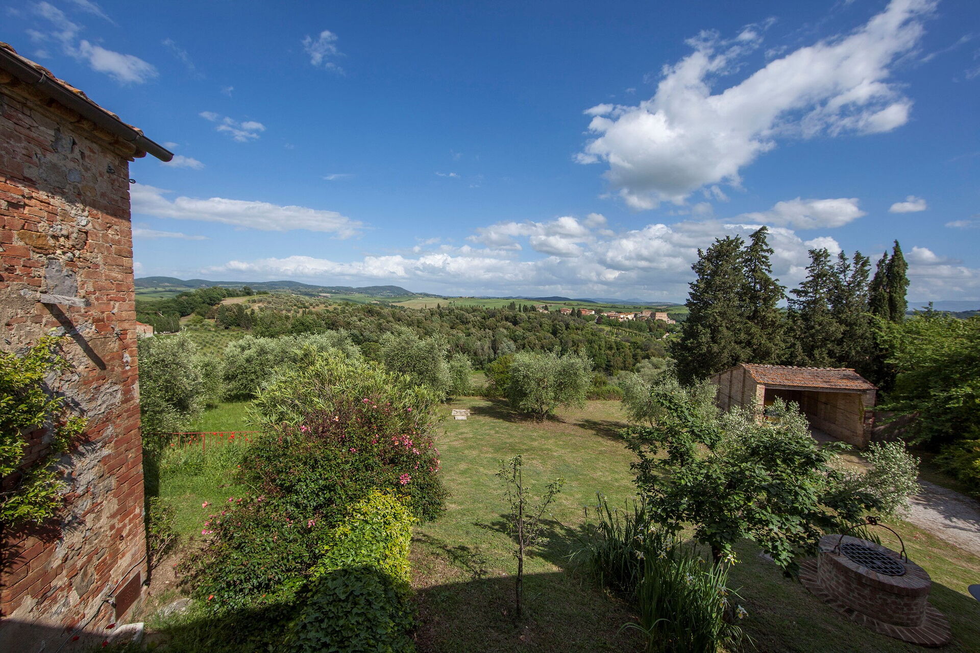 Wanneer u aankomt wordt u welkom geheten door de eigenaar of beheerder en vindt u een mooie, schone en goed onderhouden woning met uitzicht over de heuvels ideaal voor een geweldige vakantie in Toscane. Hoe u de dagen ook doorbrengt - met excursies, musea bezoek, winkelen of rijdende door het prachtige landschap, zodra u thuis komt kunt u uitrusten samen met familie en vrienden bij het zwembad voor een perfecte afsluiting van nog weer een dag in Toscane. Buiten zijn er ook een terras en barbecue. Als u van koken houdt is er een goed uitgeruste keuken met o.a. koffiezetapparaat, magnetron oven, broodrooster, fornuis en ijskast en natuurlijk voldoende servies en bestek voor tot tien personen. Als u liever buiten eet is er een veranda met tuinmebilair waar u van het weer kan genieten terwijl u buiten eet.