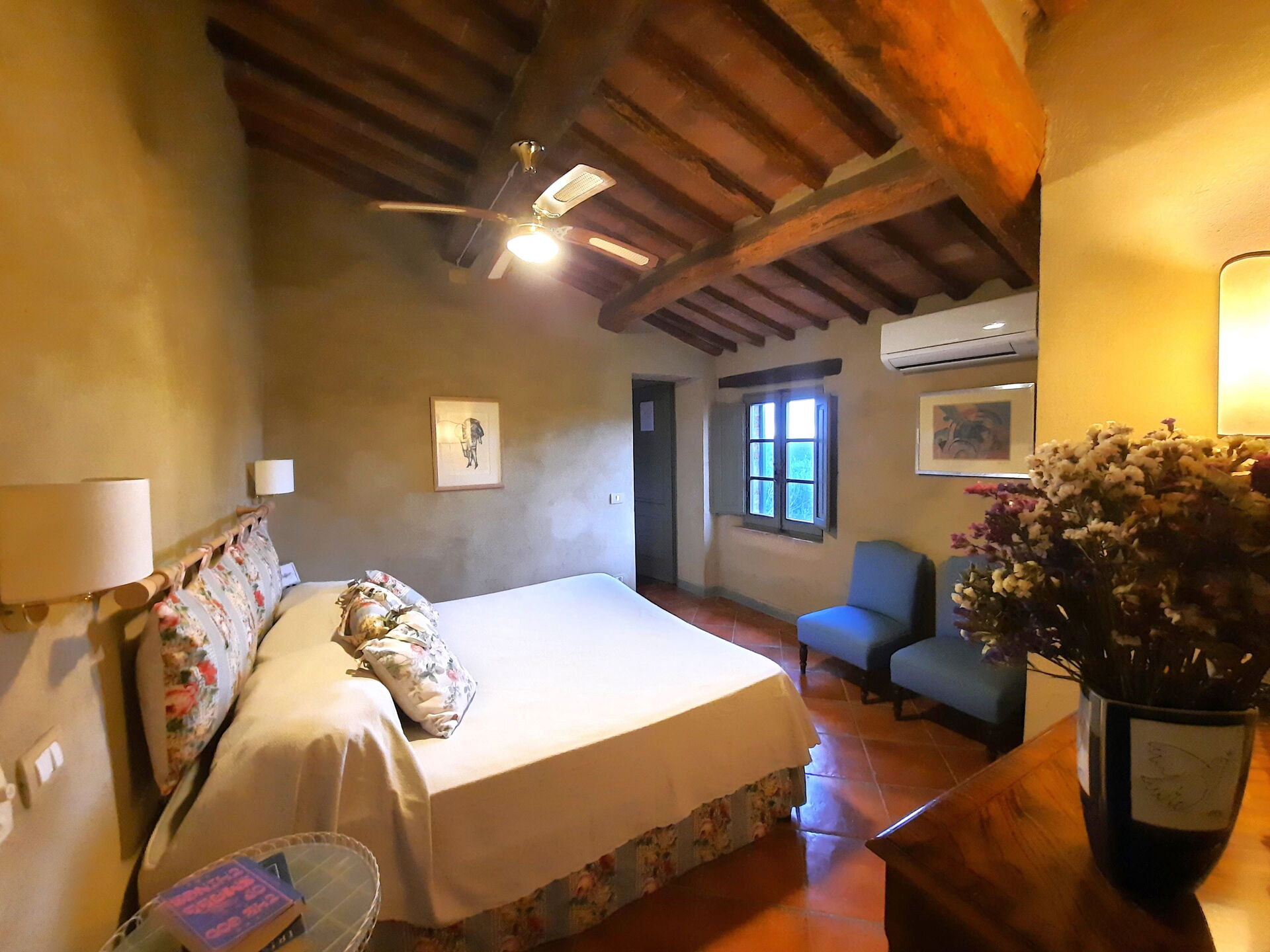 Slaapkamer met badkamer 1: tweepersoonsbed (breedte: 1.7m, lengte: 1.9m), WIFI internet, internet, airconditioning, hor, plafondventilator, bank, wastafel, toilet , bidet, douche, haardroger.