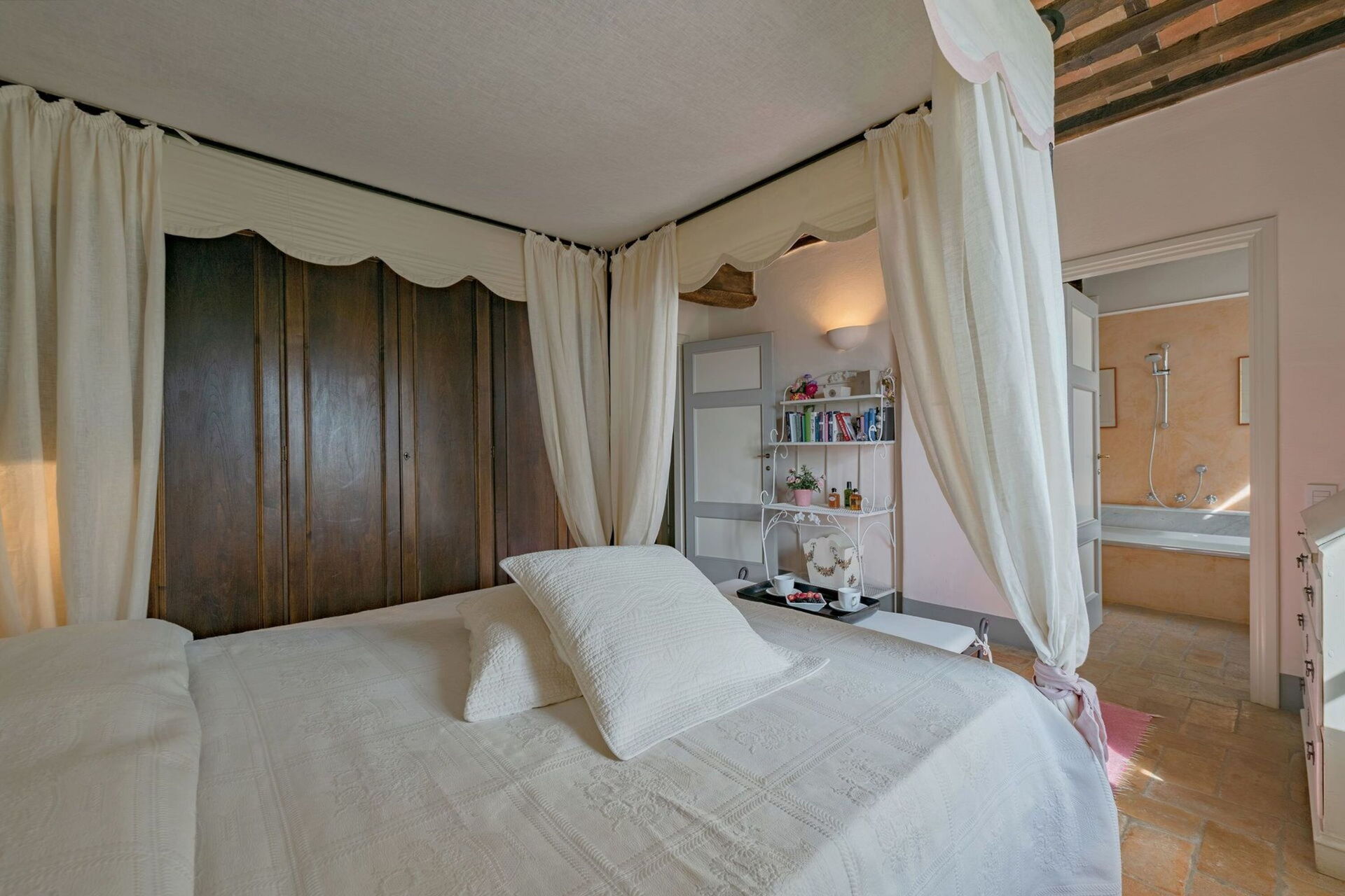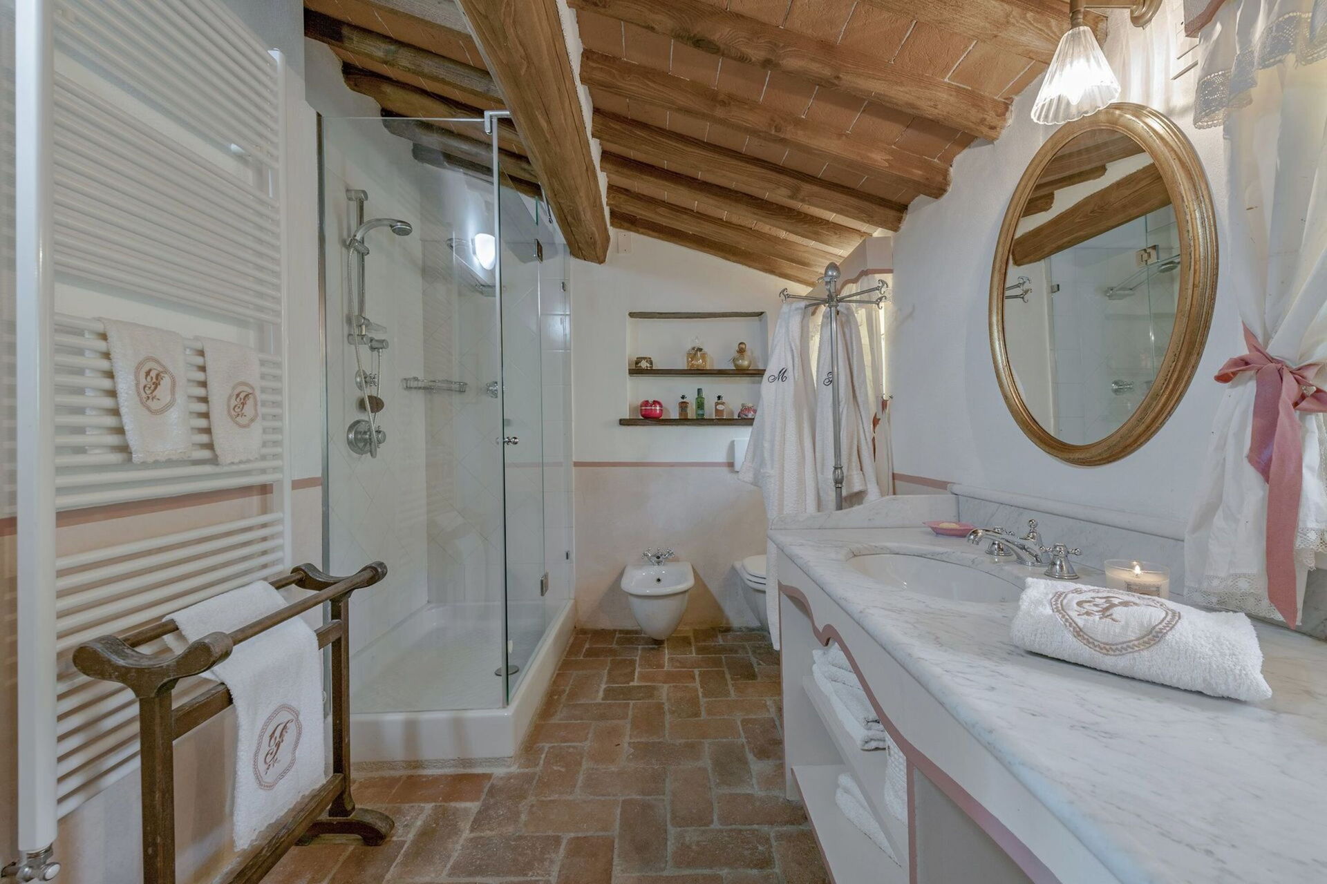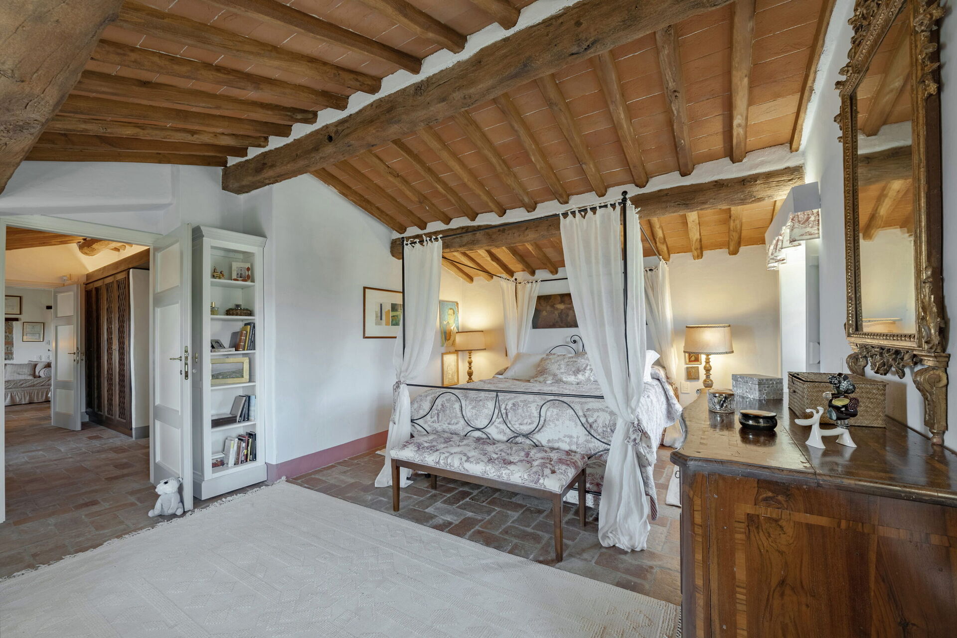 Originally built in the 18th century, the villa has been renovated while maintaining intact the typical characteristics of Tuscan rural buildings (original stone walls, wooden beams and red terracotta floors). Internally the property is furnished in an elegant style creating a clever mix of modern/functional furnishings and antique pieces.