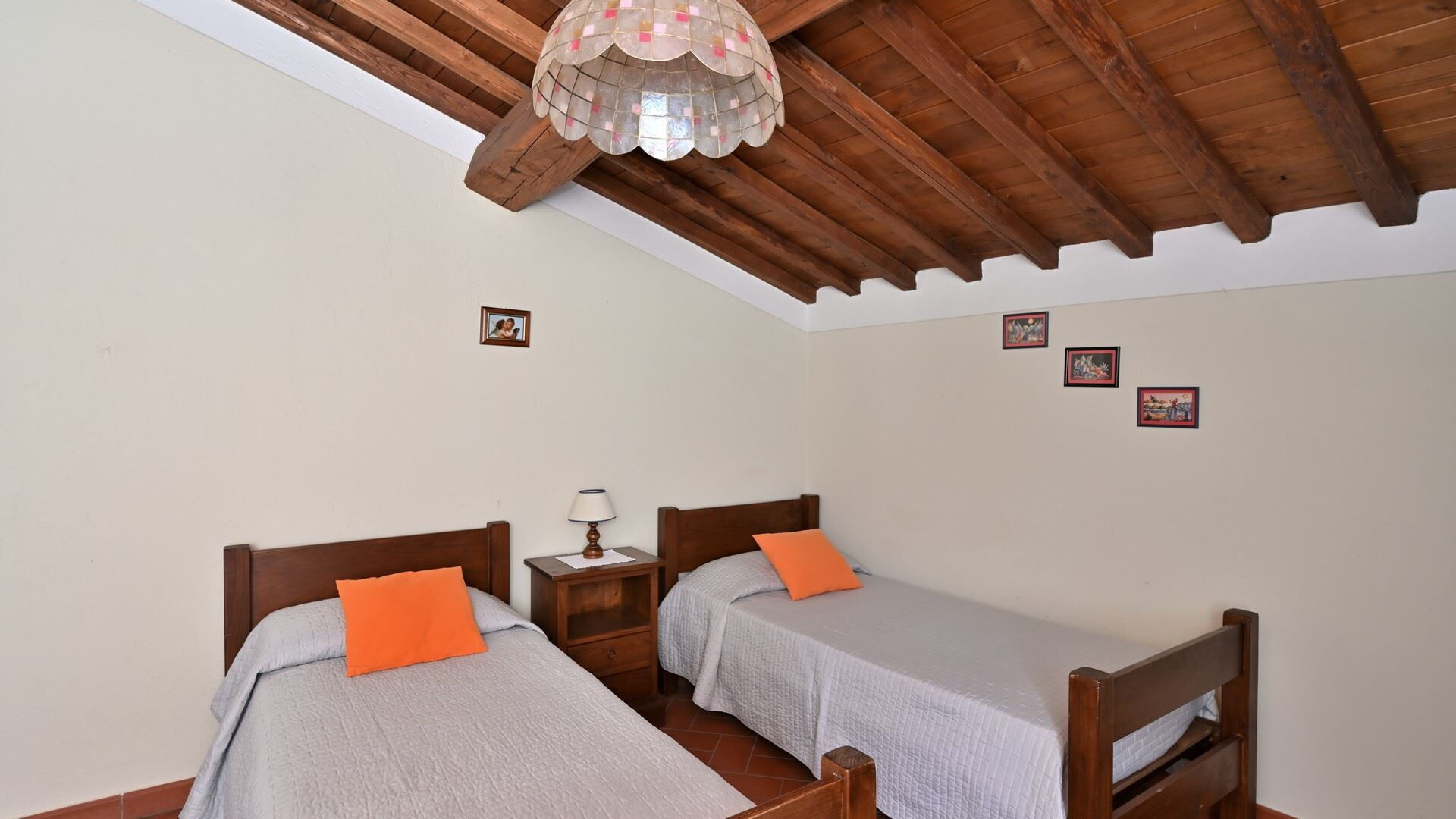 Slaapkamer 2: twee eenpersoonsbedden, ventilator, bank.