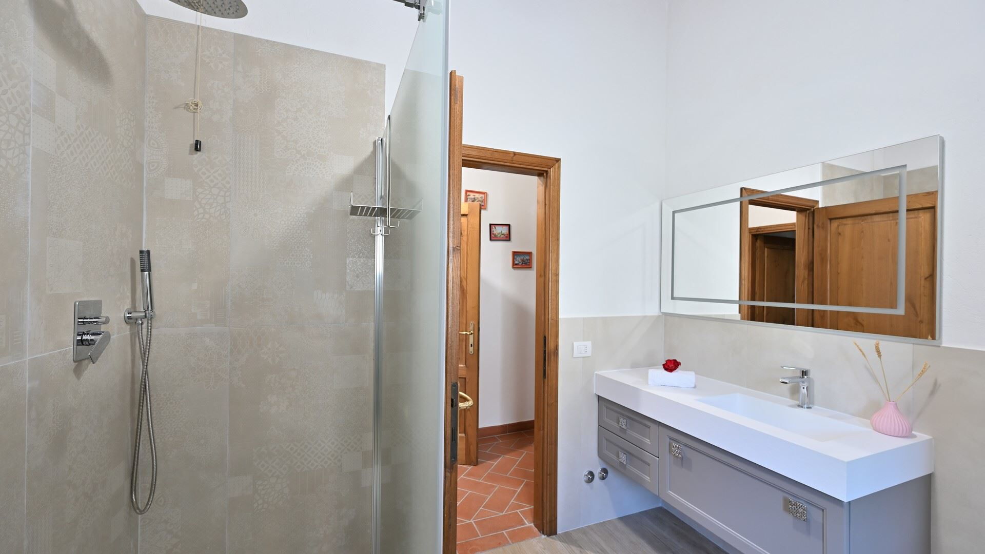 Wanneer u aankomt vindt u een fraaie, schone en goed onderhouden woning met uitzicht over de heuvels perfect voor een geweldige vakantie in Toscane. Voor uw vermaak vindt u een privé zwembad waar u kunt ontspannen terwijl u geniet van een heerlijk koel drankje na een drukke dag toeren. Op het terrein is er voor uw genoegen een barbecue en terras. Als u van koken houdt is er een goed uitgeruste keuken met o.a. koffiezetapparaat, magnetron oven, broodrooster en ijskast en natuurlijk voldoende servies en bestek voor tot 12 personen. Als u liever buiten eet is er een veranda met tuinmebilair waar u van het weer kan genieten terwijl u buiten eet.